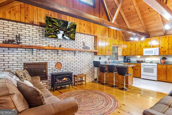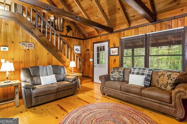 Nestled on over two private,level wooded acres, this adorable cabin offers the perfect blend of charm and comfort! Step inside to find the master and laundry conveniently located on the main level. The open layout makes for a cozy living space ideal for gathering, while outside, a firepit awaits for evenings under the stars. Recent upgrades include new appliances, tankless water heater, new gutters, new screws on metal roof , HVAC and more! Furnishings are negotiable making this an easy turn key option! Whether you are searching for a short term rental investment, a peaceful retirement home or your own private mountain escape, this property checks every box. Call today for an appointment!