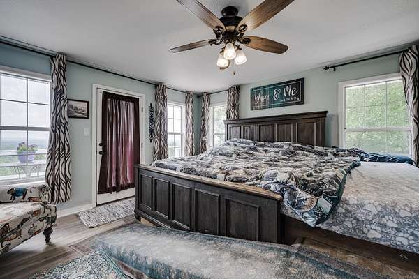 Welcome to this well maintained home nestled on a scenic ridge with breathtaking panoramic views. This property features a repaved driveway leading to a two-car garage and inviting entryway. Step inside to find luxury vinyl flooring, blending durability with modern style. Four bedrooms on the main level and 5th bedroom/or an office and full bath downstairs, which would be perfect for college students or in laws. The remodeled primary bathroom offers a spa-like retreat with updated finishes, while the kitchen boasts sleek granite countertops perfect for cooking and entertaining, also includes spacious laundry with laundry shoot. Recent upgrades include a newer roof, water heater, and HVAC units, providing peace of mind and energy efficiency. Step out onto the large deck and soak in the beauty of the surrounding landscape. A heated and cooled workshop on the bottom floor offers the perfect space for hobbies, projects, or additional storage. In addition to having city water, there is a working well, perfect for watering. Don't miss your opportunity to own this exceptional home with a view -- schedule your private showing today!