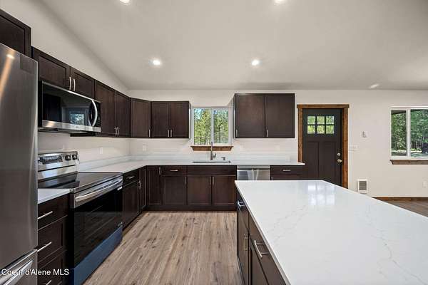BRAND NEW ON 5 ACRES WITH FULL LANDSCAPING! High-end finishes meet turnkey country living in this stunning 2,292 SF, 4BD/3BA home. Skip the mud and construction dust--this property is fully landscaped with front/back sprinklers and a freshly hydroseeded lawn already coming in. Inside, find a sprawling open floor plan featuring quartz countertops, custom knotty alder cabinetry/trim, and a huge walk-in working pantry. Built to entertain, the home flows seamlessly from the designer kitchen to the expansive living spaces. Relax in the primary suite with a 6' soaker tub and walk-in shower. The 5-acre lot is the perfect blend of open and partially treed land, offering privacy and ample room for a shop, barn, or horses. BONUS: High-production private well (25+ GPM). Move into luxury and green grass immediately! Schedule your tour today!!
