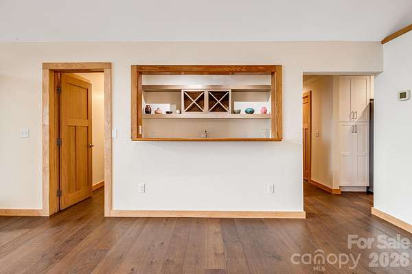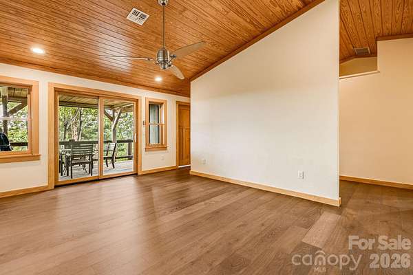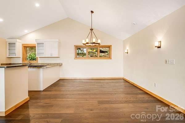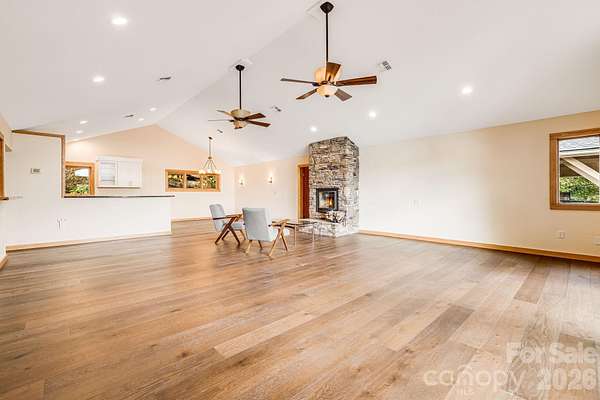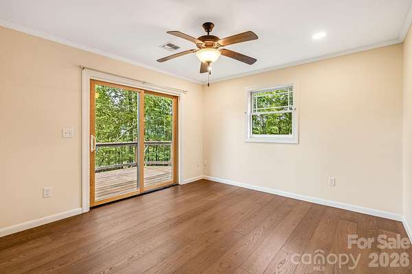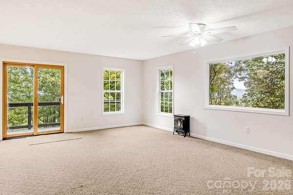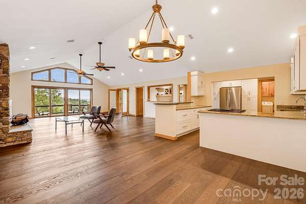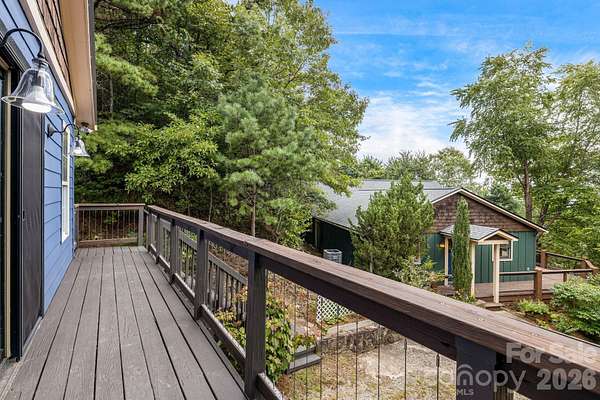 Recently remodeled private retreat on two lots encompassing approximately 14 acres in the beautiful High Rock Acres neighborhood, just 12 minutes from downtown Black Mountain. The main home offers one-level living with 3 bedrooms and 2.5 bathrooms, featuring a brand-new kitchen with all new appliances and new hardwood flooring throughout. The primary suite feels like a spa retreat, complete with an updated bathroom and its own private sitting area-perfect for quiet mornings or winding down at the end of the day. Expansive decks showcase stunning year-round mountain views and create the perfect setting for outdoor dining, entertaining, or simply relaxing. Behind the home, gardeners will love the flat garden space-an uncommon find with mountain views-featuring seasonal blooms, native and non-native plantings, and flowers that provide color three seasons of the year. The low-maintenance yard means more time to enjoy the private hiking trails, including a short walk to a waterfall on the additional 5 acre property. And when the sun goes down, the dark skies open up to incredible stargazing-you can see the Milky Way and countless shooting stars right from the deck. A detached 1-bedroom, 1-bath apartment above the double garage provides flexible space for guests, extended family, or rental income.
