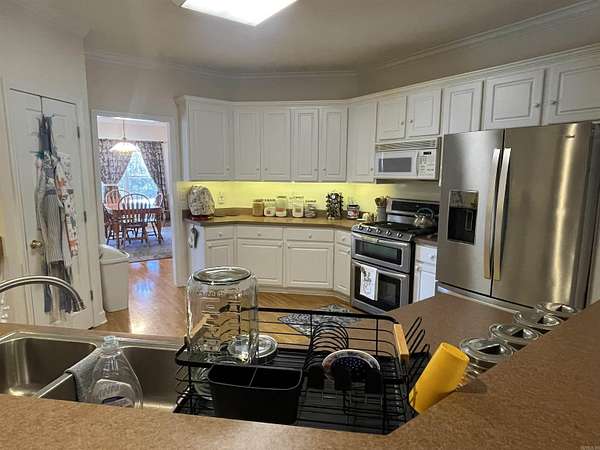Large home in highly desired neighborhood in the heart of Greers Ferry. Over 3,000 square feet on main level, over 800 square feet unfinished upstairs already with heat/air, electrical, plumbing. Can finish out upstairs if needing more living space or use as large, floored, heated and cooled attic space. Hardwood floors, high ceilings, walk-in closets, open floor plan, smaller bedroom can be used for office/nursery, room on front of home with bookcases would be great office/library. 2 zoned HVAC units with heat pump new in 2022 along with water heater. Covered front/back porches, 20x36 concrete pad, 18x24 carport, attached 12x18 storage/8 ft roll up door. Circle drive, oversized 2 car garage and golf cart garage. Back yard fenced. New roof 2017. Sits on 2 lots. Actual lot size to be determined. Both refrigerators, all shelving, window treatments, washer and dryer, workshop bench and shelving, and tool racks in garage convey. All other furniture is negotiable. Great location close to marinas, shopping, and restaurants. Seller just had home appraised. Make your offer today.