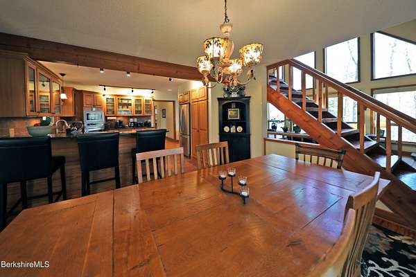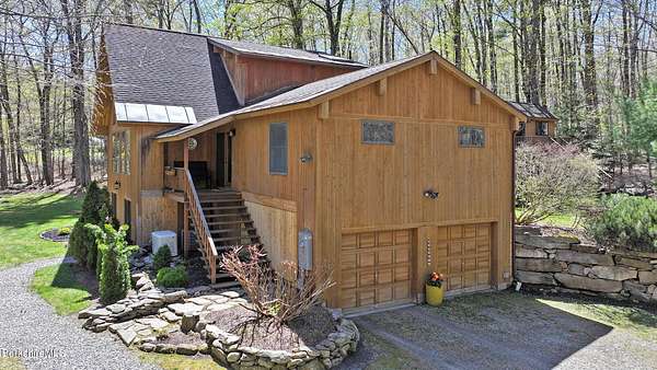 Discover the perfect blend of comfort and charm with this stunning contemporary situated on two acres. There is a full-house Generac generator for comfort and peace of mind and central air. The great room is washed with natural light from the wall of windows and has a beautiful gas fireplace to provide additional warmth on cold Winter days. There is a circular flow into the spacious dining room and the updated kitchen making this home ideal for entertaining. A full bath and two charming guest bedrooms welcome visitors and offer opportunities for a home office. The oversized four-season sunroom offers magnificent light that takes in the picturesque landscaped surroundings and woodlands. It features an efficient gas stove for chillier days and screen inserts to help capture Summer breezes. The dining room and four-season room provide direct access to a large mahogany deck overlooked by the charming tree house ideal for a studio or a playroom. The second level houses your primary suite with tiled steam shower, generous walk-in closet and private balcony for your morning coffee. The walkout lower level boasts a comfortable family room perfect for a morning workout, viewing an afternoon movie or ball game on the large screen TV, or a game of pool. There is a half bath, large bonus storage room and an oversized two-car garage. The grounds offer established perennial plantings, open spaces and woodland privacy. Crystal Pond access for swimming, kayaking and fishing is yours. Jacob's Pillow and many Berkshire attractions are nearby. Don't miss this opportunity for a gracious, tranquil and peaceful living experience.