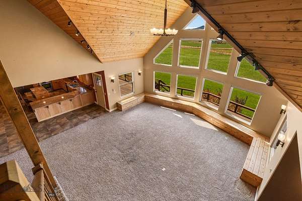 This custom-built residence offers over 3,500 square feet of thoughtfully designed living space on just over 5 acres with irrigation water and handlines. The beautifully landscaped grounds feature a manicured lawn with an underground sprinkler system and a wrap-around deck extending along three sides of the home, ideal for enjoying the surrounding views of the Ruby Mountains. Inside, the home includes 4 bedrooms, with one well-suited for use as an office. The primary suite offers a walk-in closet, bathroom with a jetted tub, and private deck access to the hot tub. Two additional upstairs bedrooms are generously sized, each with large closets and private balconies. The formal dining room provides direct access to the deck, creating excellent space for gathering and entertaining. The kitchen is equipped with granite countertops, stainless steel appliances, and abundant cabinetry. The main living area showcases vaulted ceilings, expansive windows that frame the mountain views, and a gas fireplace. Additional features include central air conditioning, central vacuum, and a landscaped yard with underground sprinklers. This property combines comfort, functionality, and scenic beauty with ample space both indoors and outdoors.