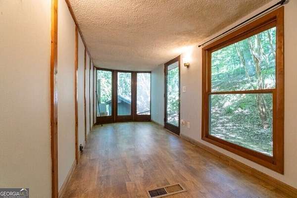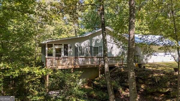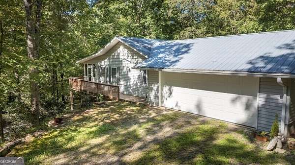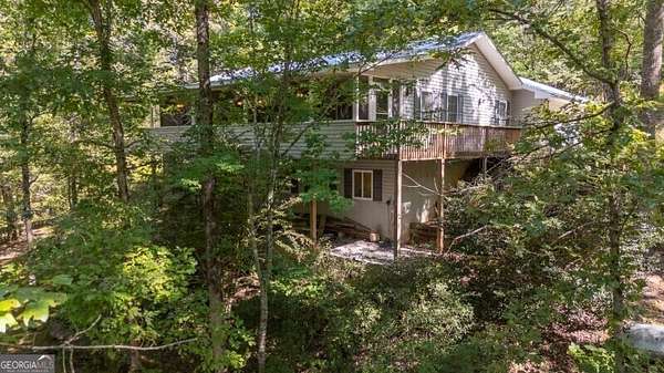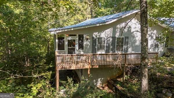 What a rare gem! Imagine 4 wooded and private acres, 750ft frontage on the Tesnatee River. Sit out on your front screened porch (its runs the whole width of the house) and listen to the water moving as well as the quiet. Property's invites you in with 2 homes, main home offers 2 oversized bedrooms each with a bath, family room and the gathering area for all families- the eat in kitchen with breakfast bar and double ovens. Full basement with additional family room, bedroom and bath. Has both interior and exterior entry, plumbed for a kitchen so could be a guest/teen or in law suite. Walls have been waterproofed and sealed both inside and out. Water filtration system, central vacuum system, metal roof and 2 car garage with opener. 2nd home could be guest area, in law suite, a studio or office. It offers 2 bedrooms, a bath, kitchen, family room and a sun porch. If you are looking for peace and quiet, wildlife, fishing, firepit by the river and a little privacy - welcome home.