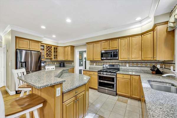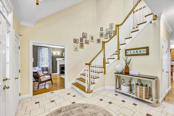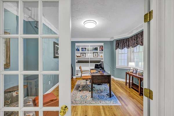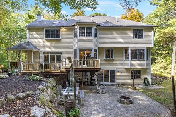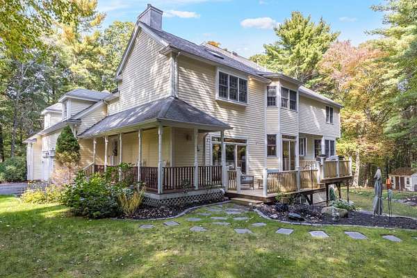 Tucked at the end of a cul-de-sac in the coveted Shipyards neighborhood, this 3.5+ acre sanctuary offers timeless elegance, modern functionality, and private access to the scenic North River via a shared dock. The gracious 4-bedroom, 5-bath Colonial includes a bonus room and multiple flexible living areas, blending classic detail with everyday comfort. Sun-drenched interiors feature hardwood floors, soaring ceilings, and four fireplaces. The open-concept kitchen-complete with granite counters and an oversized island-flows seamlessly into a vaulted family room, while formal living and dining rooms are framed by custom millwork and arched transitions. A private office makes work-from-home effortless. Upstairs, the serene primary suite boasts cathedral ceilings, gas fireplace, jacuzzi tub, and walk-in closet. The finished lower level invites entertaining with a bar, game room, and walk-out patio with firepit. With a 3-car garage, wraparound porch, and wooded trails leading to conservation land, this exceptional home offers privacy, sophistication, and a connection to nature rarely found in such a prime and convenient setting.