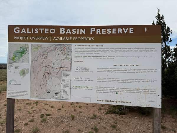 Lot 17 in the Southern Crescent neighborhood of the Galisteo Basin Preserve offers a rare opportunity to build in a protected high-desert setting with direct access to open space and expansive mountain and basin views. Southern Crescent is one of a limited number of neighborhoods within the 9,500-acre Preserve, the majority of which is permanently conserved, offering long-term privacy, dark night skies, and an exceptional natural environment. The lot features a clearly designated building envelope with excellent solar exposure, making it well-suited for an efficient, thoughtfully designed home. Underground electric and telephone are in place, and water is supplied by a shared well system, significantly reducing upfront infrastructure hurdles for a new build. Lot 17 borders protected open space and provides immediate access to miles of hiking and exploration within the Preserve. Mature trees, native grasses, and sweeping views of multiple mountain ranges define the setting, while reasonable design guidelines help ensure long-term value and aesthetic continuity throughout the neighborhood. Despite the sense of seclusion, the property remains conveniently located approximately 10 minutes from Lamy and Eldorado amenities, including dining, a tap room, and the Amtrak station, with the historic City of Santa Fe only about 20 minutes away. A comprehensive soils report has been completed for the lot and is available to qualified buyers upon request. This is a build-ready homesite offering a rare balance of privacy, protected land, and proximity to Santa Fe.