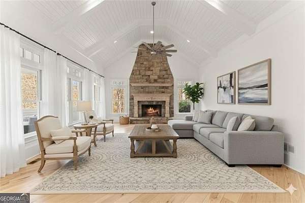 NOW is the time to make your dream home a reality! Welcome to a truly extraordinary private luxury estate in the prestigious, gated community of The Summit in Dawsonville. Set on 6.72 gated and fully fenced acres, this remarkable residence blends timeless elegance with a fully modernized design. Beyond the neighborhood's gated entrance, the property offers its own private gated entry, leading you down a long, tree-lined driveway to a stately circular turnabout that sets a grand tone upon arrival. The inviting front porch is perfect for morning coffee or evening relaxation, and once inside, the home immediately impresses with its meticulous, whole-home renovation. Hickory wood floors from Vermont, upgraded lighting, soaring ceilings, and refined architectural details showcase the owners' commitment to quality and craftsmanship. Not a single detail has been missed throughout the home. At the heart of the residence is a dramatic two-story great room with vaulted ceilings and a breathtaking wall of windows overlooking the serene, wooded property. The space is filled with natural light and creates a seamless connection to the outdoors. The chef's kitchen is a standout centerpiece, featuring custom cabinetry that extends all the way to the ceiling, quartz countertops, a tiled backsplash, an oversized island, industrial-grade stainless-steel appliances-including an 8-burner professional range-and exquisite designer finishes. The kitchen opens directly into the keeping room, where a grand stone fireplace, tongue-and-groove vaulted ceiling, and beautiful wood beams create a warm and inviting atmosphere ideal for casual gatherings or cozy evenings. The primary suite on the main level serves as a luxurious private retreat. The bedroom features elegant tray ceilings with intricate detailing, while the spa-inspired bath includes a deep soaking tub, glass-enclosed steam shower, double vanities, and stunning custom tilework. A spacious walk-in closet with custom built-ins adds both beauty and functionality. All closets throughout the home have been thoughtfully outfitted with custom built-ins. Upstairs, each generously sized secondary bedroom includes its own private full bath and walk-in closet. A large bonus room above the oversized three-car garage provides exceptional flexibility and can serve as a playroom, office, gym, media room, or even a seventh bedroom. The fully finished walk-out basement introduces another level of luxury living, complete with a game room, a custom home theater with 7.1 surround sound and 4K projector, a stone fireplace, an additional bar with dual ice makers, and a spacious guest suite with full bath. With 10-foot ceilings and spray foam insulation, the terrace level is as comfortable as it is impressive. A sunroom and Trex deck extend the living space outdoors, where professionally landscaped grounds and an irrigation system enhance the estate's beauty. Surrounded by protected land, the property ensures long-term privacy and an unmatched sense of tranquility. Wildlife is frequently seen across the acreage, adding to the peaceful North Georgia setting. With ample room for a pool, gardens, or even a vineyard, the possibilities are endless. Despite its secluded feel, the location is exceptional-just minutes from Lake Lanier, the North Georgia Premium Outlets, wineries, scenic parks, and the Blue Ridge Mountains. This estate offers the ideal balance of serenity and convenience. This is more than a home-it is a lifestyle. A rare opportunity to own a one-of-a-kind estate where luxury, privacy, craftsmanship, and natural beauty exist in perfect harmony.