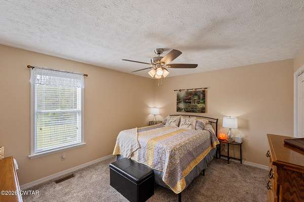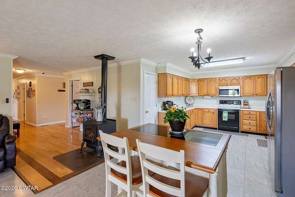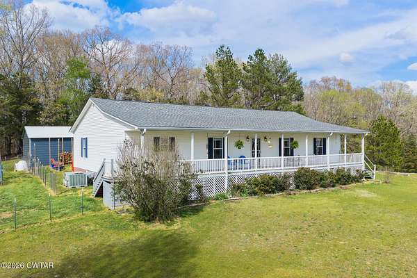 Nestled on 4.74 beautiful acres, this charming 4-bedroom, 2-bath country home offers the perfect blend of space, comfort, and peaceful surroundings. Kitchen features all appliances, pantry, island, and tons of work space. The Gathering Room off kitchen features corner fireplace with gas logs, as well as a stand alone wood burning stove. Living room features entrance from the fabulous front porch. You will be pleasantly surprised by the oversized bedrooms. and baths. Extra wide hallways make for ease in navigating furniture wheelchair, or other bulky items. Enjoy quiet mornings on the covered front porch overlooking the scenic community lake, where residents can relax and enjoy fishing anytime. The property features plenty of room for vehicles, hobbies, and storage with a detached 2-car garage, 2-car carport, and a utility shed. If you are looking for small town living; a quiet place with a few acres for garden, or pets; if affordability is your goal; if your plan is to be within a short distance from the Tennessee River; we invite you to visit Scotts Hill, TN. Most who find it, never want to leave.