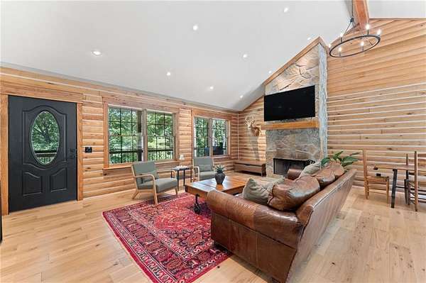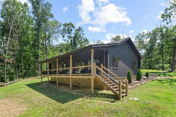 Your Dream Cabin in the Woods is Calling! Nestled on 26 acres of mature forest, this stunning solid oak cabin offers the perfect blend of high-end finishes, rustic charm, and total seclusion. Whether you're looking for a peaceful retreat, a full-time residence, or a hunting getaway, this property has it all. Crafted with solid natural materials. The vaulted living room is the heart of the home, featuring a soaring stone wood-burning fireplace accented with beautiful woodwork -- perfect for cozy nights in. Step outside on the 47-foot covered porch, or explore the private trails leading to a wet weather creek. Wildlife is abundant here -- watch deer and other native animals roam your property or enjoy hunting on your own land. The home is well-equipped with a 730 ft deep well. Conveniently located just 2 miles from Big Sugar Creek, 4.5 miles to Huckleberry Ridge Conservation Area, 10 miles from Missouri/Arkansas border, and only 20 miles to Bentonville.