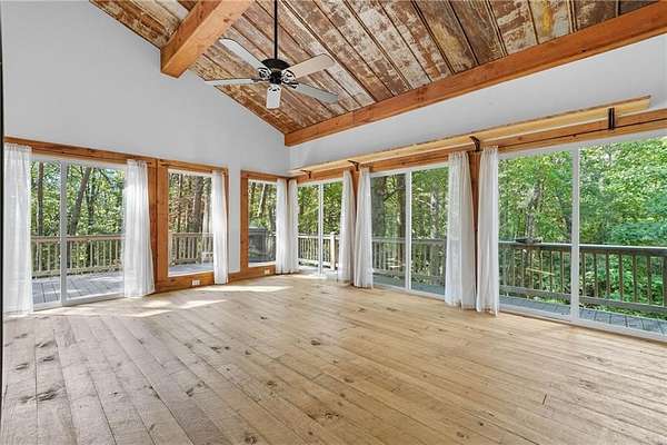 Escape to 5 acre your private mountain retreat at 55 Tickanetley Lane, where rustic charm meets modern comfort. This beautifully crafted 3-bedroom, 2-bath home welcomes you with exposed beams, rich wood accents, and soaring ceilings that create a warm and inviting atmosphere. The open-concept living room features a dramatic stone fireplace as its centerpiece, flowing seamlessly into a spacious dining area and an updated kitchen with abundant cabinetry, granite countertops, and stainless steel appliances. The primary suite is a true retreat, offering generous space, a true walk-in closet, and a spa-like bath with double vanities, a tiled walk-in shower, and a soaking tub with a peaceful view. Two additional bedrooms and a full bath are good sized, while the expansive laundry and storage areas add practicality. Outdoor living is just as impressive, with multiple decks, a covered patio, and a wooded setting that blends privacy with the beauty of nature. Situated perfectly on 5 acres of privacy with no HOA or restrictions this home is perfect for year-round living or a weekend escape.