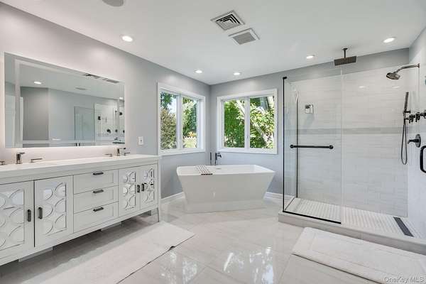 - Beamed Ceilings, Built-In Features, Cathedral Ceiling(s), Chandelier, Double Vanity, Eat-In Kitchen, Entrance Foyer, First Floor Bedroom, First Floor Full Bath, Formal Dining, High Ceilings, High Speed Internet, Open Floorplan, Open Kitchen, Primary Bathroom, Quartz/Quartzite Counters, Recessed Lighting, Smart Thermostat, Soaking Tub, Sound System, Tray Ceiling(s), Washer/Dryer Hookup