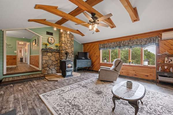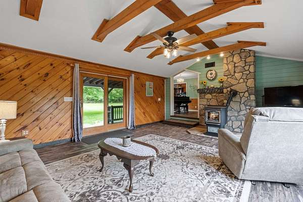 Welcome to your private retreat! With water and mountain views, this beautifully maintained 3-bed, 2-bath home with bonus room offers an ideal blend of comfort, efficiency, and breathtaking scenery - all on 2.88 acres. Fully paid-off solar panels and a Generac generator ensure energy savings and year-round reliability. The grounds boast peaceful lawns filled with mature grape vines and privacy. Step into the living room, filled with rich wood details and a vaulted ceiling. Stay cozy in the winter months with a pellet stove set in a charming stone fireplace surround. When summer hits, enjoy mini split AC units throughout. The newly refreshed kitchen was just redone in 2025, fit with a farmer's sink and stainless steel appliances. A separate spacious dining area right off the kitchen allows space for gathering, plus extra room for a coffee and tea bar. There's one bedroom on the main floor, two oversized bedrooms upstairs, and a huge bonus room above the heated 2-car garage. Use this space for a home office, guest suite, or entertainment space. The possibilities are endless! One of the standout features is the oversized screened-in porch - a true extension of your living space. There's no better place to enjoy your morning coffee, a good book, or hosting friends and family. This is rural living at its finest - enjoy the simple, steady peace it brings. OPEN HOUSE Sat April 25th, 10am-12pm.
