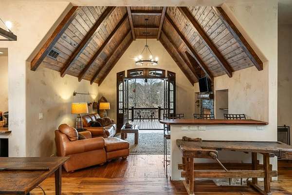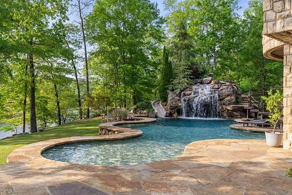 Now accepting Bitcoin. A triumph of architectural artistry, Havenstone is a rare and irreplaceable estate, meticulously constructed with craftsmanship and material integrity nearly impossible to replicate. Set on a private peninsula lot overlooking King Lake-Milton's largest and most prestigious private body of water-this estate is not merely a residence but a living testament to centuries-old techniques, globally sourced rare materials, and an unrelenting commitment to perfection. From foundation to finishing details, every inch reflects an uncompromising dedication to authenticity. The fa ade, composed of hand-chiseled Leuders limestone, was sourced from a single Texas quarry and individually set by master artisans. The architectural framework integrates old-growth cedar beams from British Columbia, structurally and aesthetically uniting the home's grand interior with its expansive outdoor living spaces. Inside, the residence reveals extraordinary detail, with hand-forged iron and bronze elements seamlessly woven into its design, including a sculptural floating staircase. The interior doors, crafted from rare Andean walnut, are finished with Fiddes Old World wax. Flooring throughout consists of 10-inch-wide, 12-to 16 foot-long American walnut planks, hand-scraped and beveled to create an enduring patina, while reclaimed 19th-century French terracotta and burnished European plaster walls further enrich the home's authentic, timeworn aesthetic. The great room, a stunning convergence of engineering and artistry, is framed by soaring cedar beams and anchored by a two-story fieldstone fireplace. The chef's kitchen is an unparalleled showcase of functional elegance, featuring character-grade walnut cabinetry, a hand-hammered copper range hood, an ILve Majestic Italian range, dual Bosch dishwashers, and an Italian wood-burning pizza oven integrated into a structure of reclaimed timber. Hand-forged copper sinks, blacksmith-crafted lighting fixtures, and custom bronze hardware demonstrate painstaking attention to bespoke detail. The primary suite is a sanctuary unto itself, featuring a hand-selected riverstone fireplace, private garden access, and a spa-inspired bath with a Kohler Aquatic massaging whirlpool tub, Picasso granite vanities, and an integrated steam shower. Designed for flexibility and privacy, the estate also includes a self-contained fourth-floor loft apartment with a full kitchen, private den, sleeping loft, and elevator access-ideal for multi-generational living or extended guest stays. The structurally complete terrace level awaits final customization and was envisioned as a luxurious entertainment space with a home theater, bar, gym, safe room, and wine cellar. Expanding the estate's livable footprint, over 6,000 square feet of outdoor space is anchored by a world-class aquatic environment. A multi-tiered pool experience features a swim-up bar, underground grotto embedded with phosphorescent glow rocks, a lazy river with a functional push current, a diving basin, and a natural hot springs-inspired spa. Every water feature, from cascading streams to koi ponds, was designed with geological precision, seamlessly integrating into the landscape to create a resort-caliber environment. Technological sophistication is woven throughout, with a Crestron Whole-House Automation System, commercial-grade fire suppression, and a hydronic radiant heat flooring system engineered by a Montana specialist. Even the motor court tells a story, crafted from historic cobblestones reclaimed from 19th-century Erie Canal streets. The estate's private dock provides direct access to King Lake, offering an unmatched lifestyle of serenity, recreation, and exclusivity. Located minutes from Alpharetta City Center, Avalon, and championship golf courses, Havenstone is a singular offering-an estate of such architectural and material integrity that it stands as a legacy property, impossible to replicate and designed to endure for generations.
