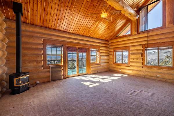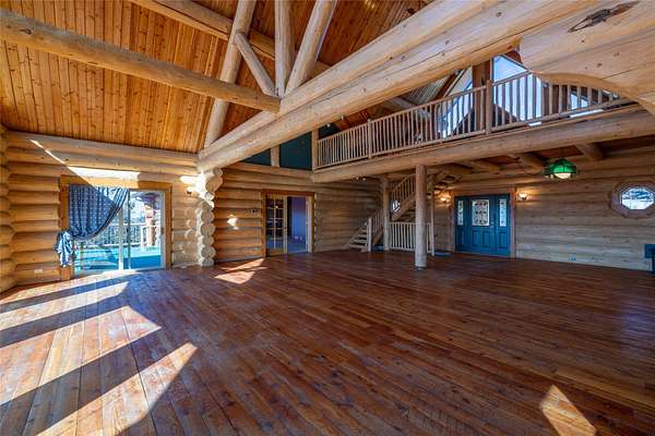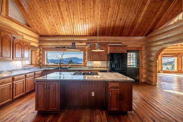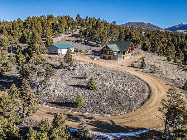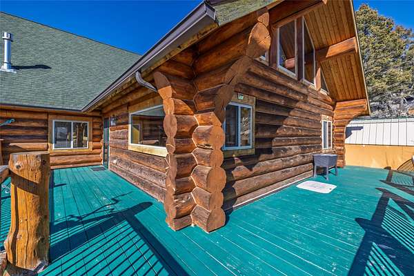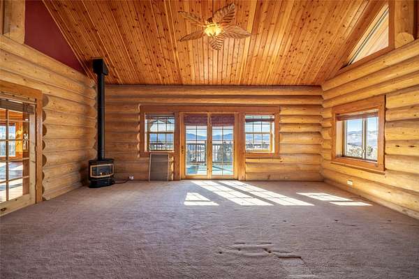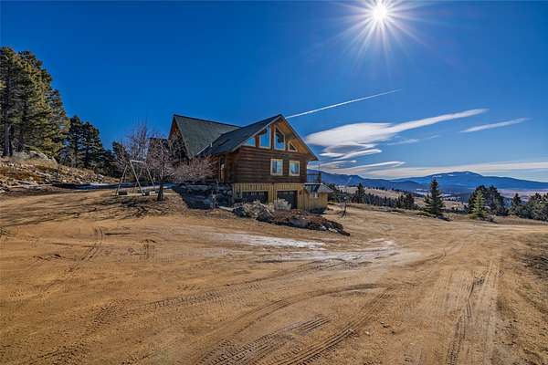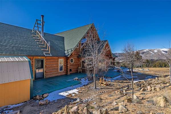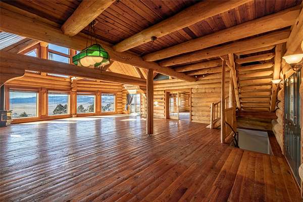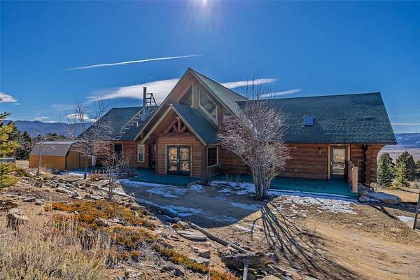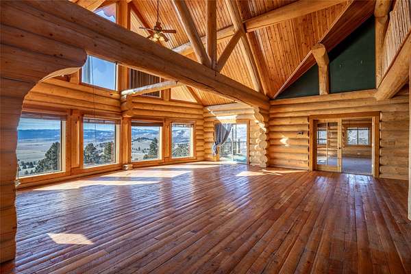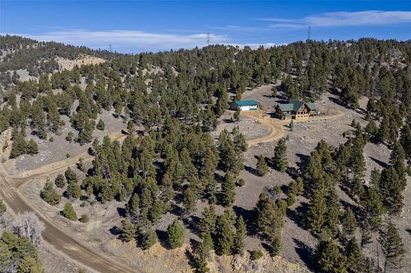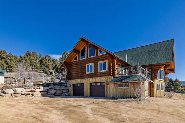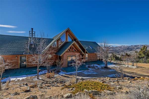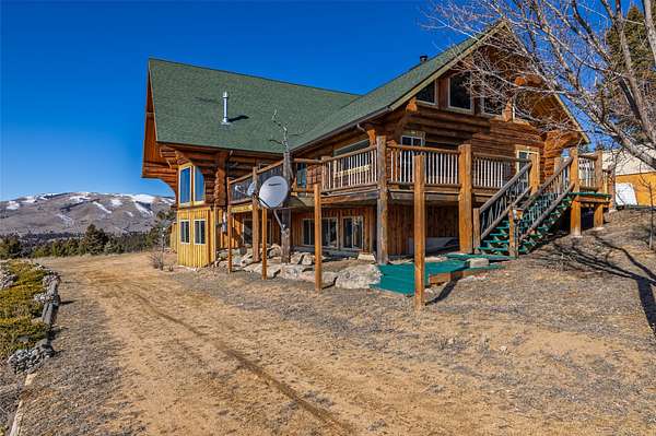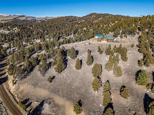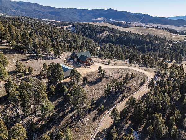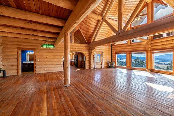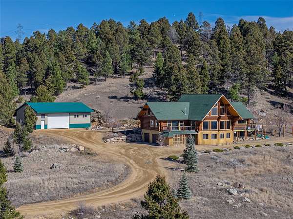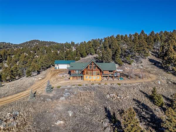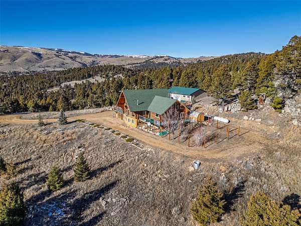 Very impressive quintessential Montana dream home, with a commanding aura yet the warmth and welcome only found in authentic log construction. Situated on 22+ acres w/sweeping mountain views, this extraordinary 4,338 sq ft home showcases massive log construction & dramatic vaulted ceilings. The great room features expansive windows, filling the living/dining area with natural light, and the spacious kitchen offers excellent workspace, abundant cabinetry, and a pantry. Designed for convenient main-level living, the home includes a primary suite, laundry, and half bath all on the main floor, plus a loft overlooking the great room. Decks extend from both the kitchen and primary suite for seamless indoor-outdoor enjoyment. The lower level includes a large conforming bedroom, an additional non-conforming bedroom, family room, and storage space. Heating is provided by three freestanding propane fireplaces (including one newly installed Feb 2026), a wood stove, and electric baseboard backup. The insulated tuck-under double garage and the 36' x 50' shop with oversized door and gravel floor provide exceptional space for equipment, projects, or hobbies. Located in coveted HD 380 a special draw for brow-tined bull. General license opportunities exist but special permit difficult to obtain. Does not qualify for land owner preference. A quick drive to HD 318 or HD 335 where more general tag opportunities exist for elk.