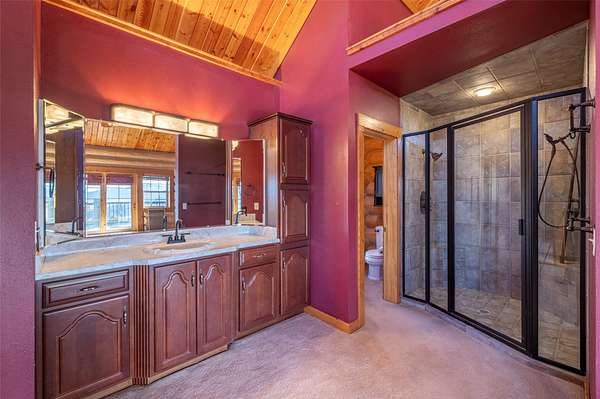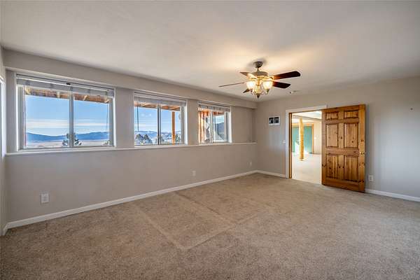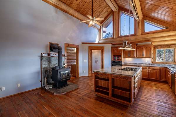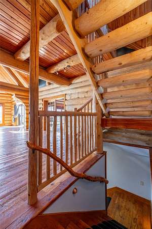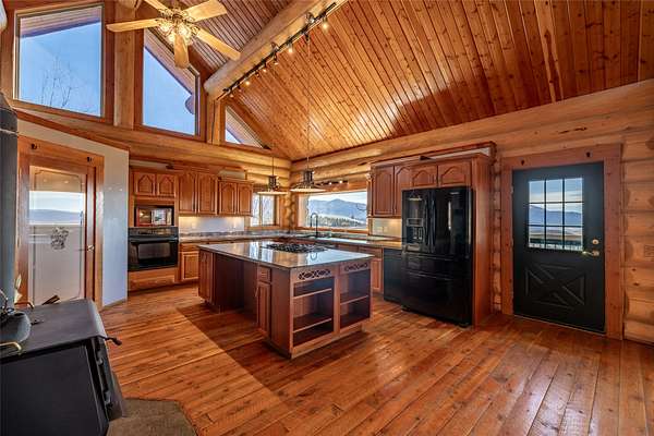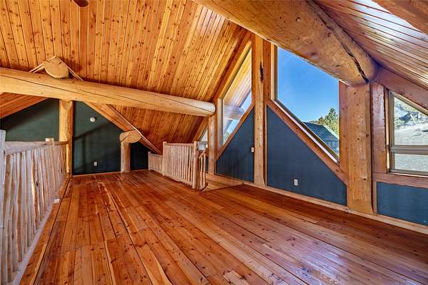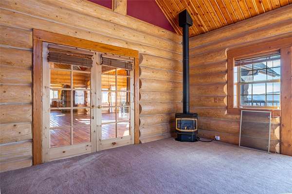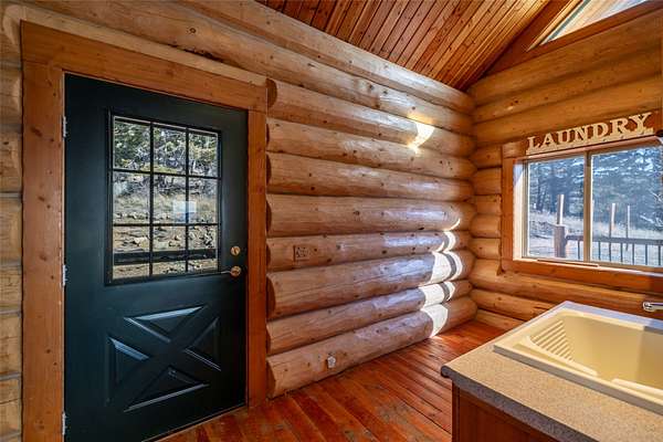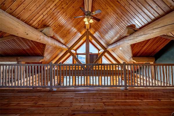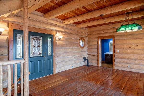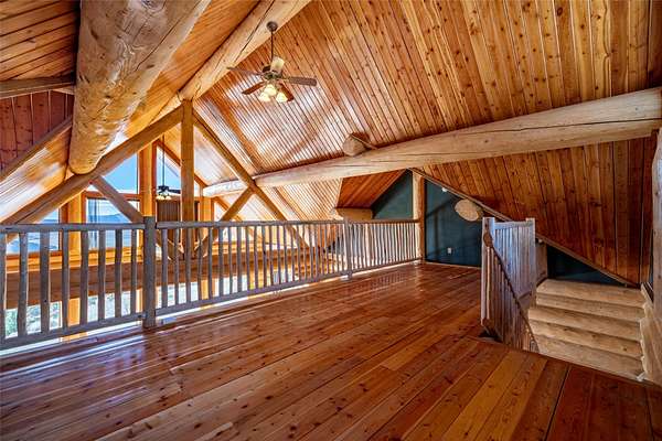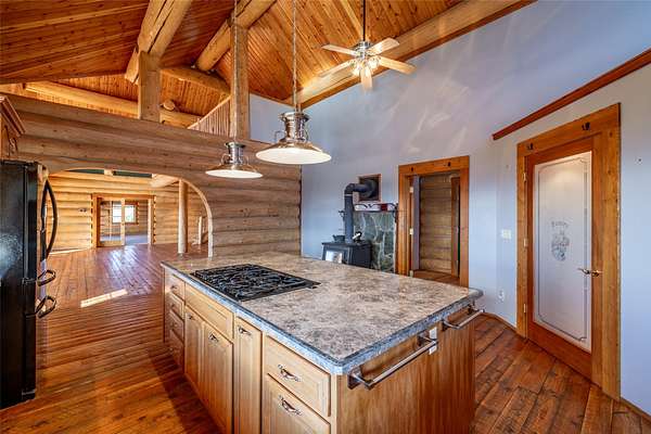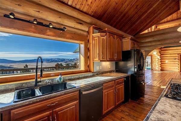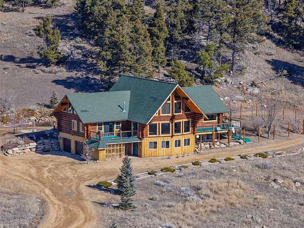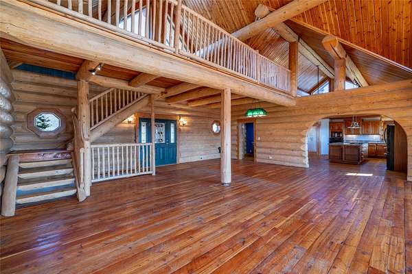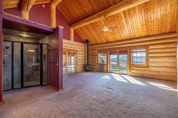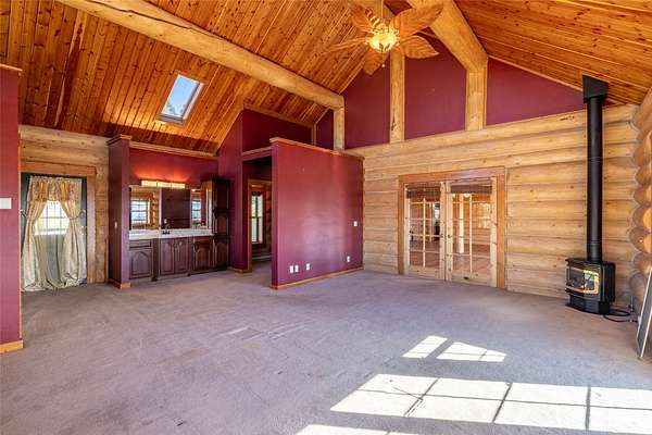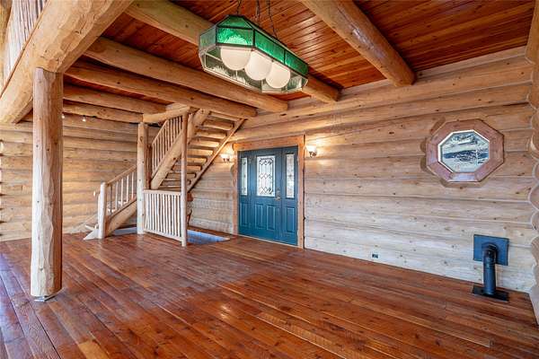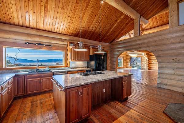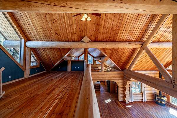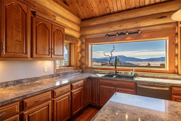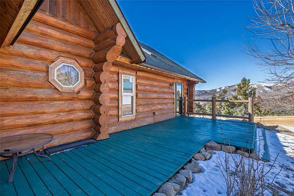 Very impressive quintessential Montana dream home, with a commanding aura yet the warmth and welcome only found in authentic log construction. Situated on 22+ acres w/sweeping mountain views, this extraordinary 4,338 sq ft home showcases massive log construction & dramatic vaulted ceilings. The great room features expansive windows, filling the living/dining area with natural light, and the spacious kitchen offers excellent workspace, abundant cabinetry, and a pantry. Designed for convenient main-level living, the home includes a primary suite, laundry, and half bath all on the main floor, plus a loft overlooking the great room. Decks extend from both the kitchen and primary suite for seamless indoor-outdoor enjoyment. The lower level includes a large conforming bedroom, an additional non-conforming bedroom, family room, and storage space. Heating is provided by three freestanding propane fireplaces (including one newly installed Feb 2026), a wood stove, and electric baseboard backup. The insulated tuck-under double garage and the 36' x 50' shop with oversized door and gravel floor provide exceptional space for equipment, projects, or hobbies. Located in coveted HD 380 a special draw for brow-tined bull. General license opportunities exist but special permit difficult to obtain. Does not qualify for land owner preference. A quick drive to HD 318 or HD 335 where more general tag opportunities exist for elk.