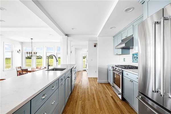 Rare opportunity on Cards Pond Road in Matunuck. This custom-built 5 bedroom, 3.5 bath home is situated on a private 5.14-acre lot. The property boasts unobstructed views of the pond, undeveloped land, and the ocean. The natural light and large windows throughout the home show off the breathtaking surroundings. On the first floor you'll find a recently renovated kitchen and an open concept living and dining room. There are also 2 bedrooms, a full bath, a powder room, a pantry closet, and a laundry room with ample storage. Upstairs you'll find the primary suite with a private deck overlooking the pond and ocean. There are 2 other bedrooms, one with an ensuite and the other with office/flex space. The property has been meticulously maintained, and in 2019, the home underwent significant improvements including a new roof, siding, kitchen, living room windows, and HVAC system. The property provides endless possibilities for outdoor activities and entertainment. Located steps from picturesque Moonstone beach and a short drive from South Kingstown's amenities and beaches. Flood insurance is not required. Come see what makes 550 Cards Pond Road a place to call home and create unforgettable memories. Please secure an appointment before driving onto the property.