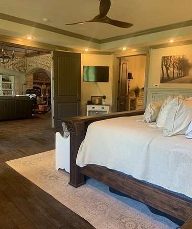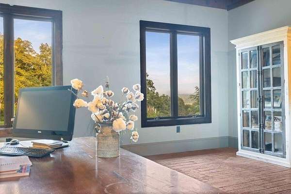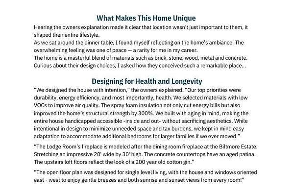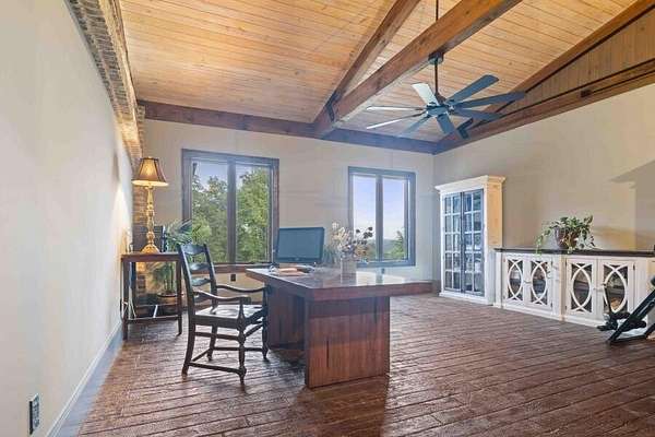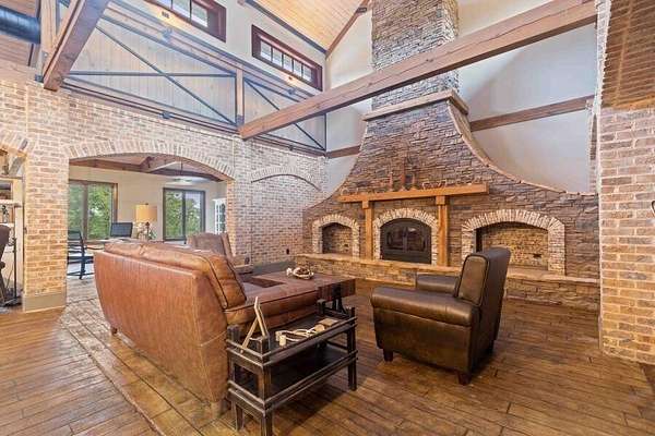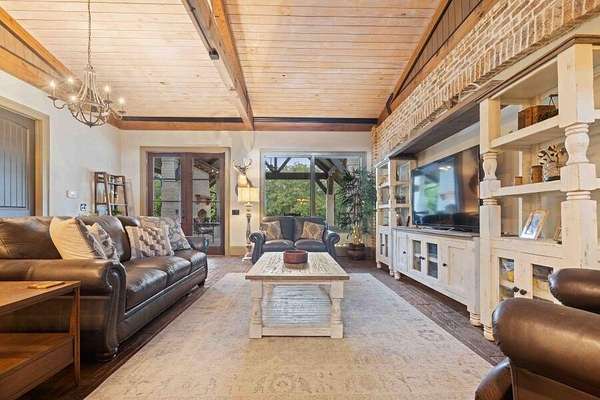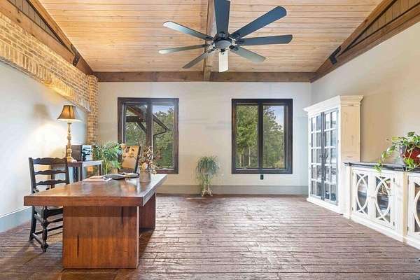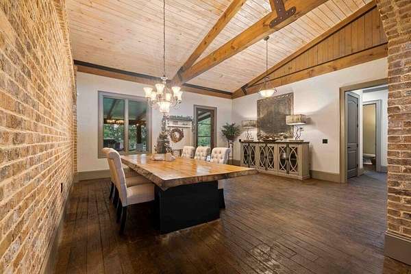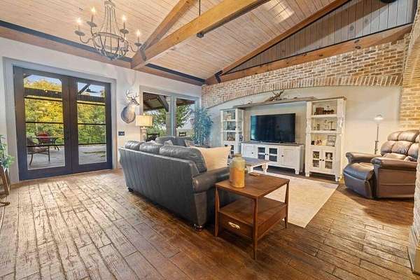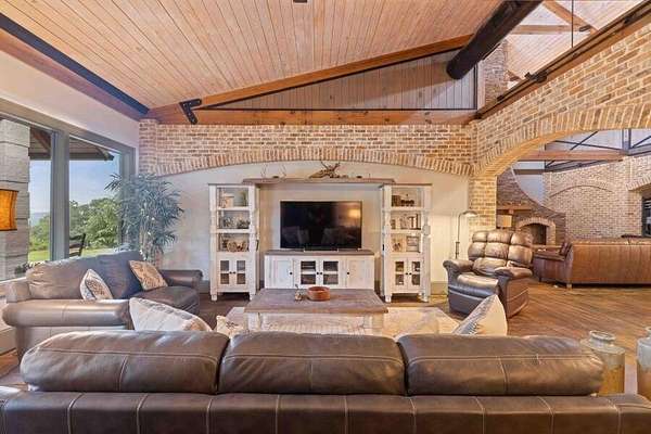 This custom-built home gracefully enhances the beauty of its setting, complimenting the landscape and spectacular views rather than competing with them. Experience the ultimate in indoor-outdoor living on acreage with boundless possibilities for hunting, farming, or just low maintenance serene relaxation! Must be seen in person to understand the flowing livability of this one-of-a-kind property. The Artisan crafted design combination of brick, wood, concrete and metal creates a timeless find of uncompromising quality. A perfect forever home with a main level primary suite. Bonus rooms can be converted to add additional bedrooms if needed. Your pets and/or animals will love the freedom of acres of wire backed 4-rail fencing or a fully fenced pasture with a pole barn. Minutes to every convenience of life in restaurants, shopping, medical facilities, highway access and more while residing in a sanctuary that feels hours from anything.
