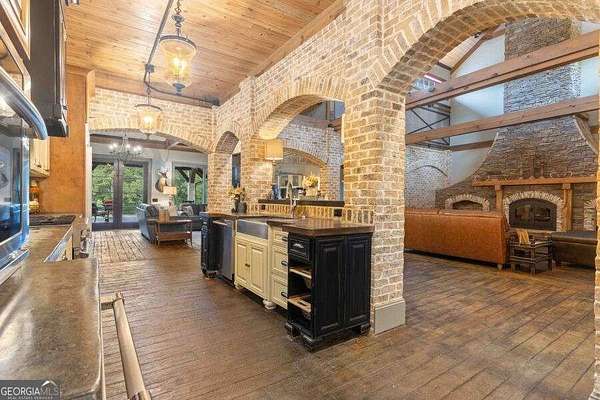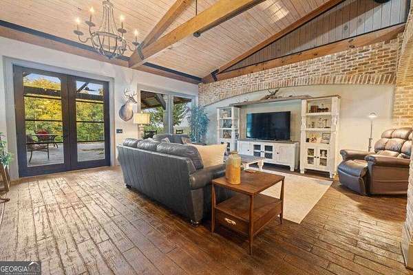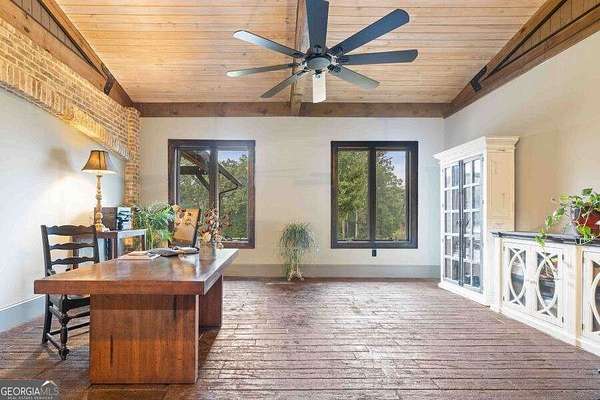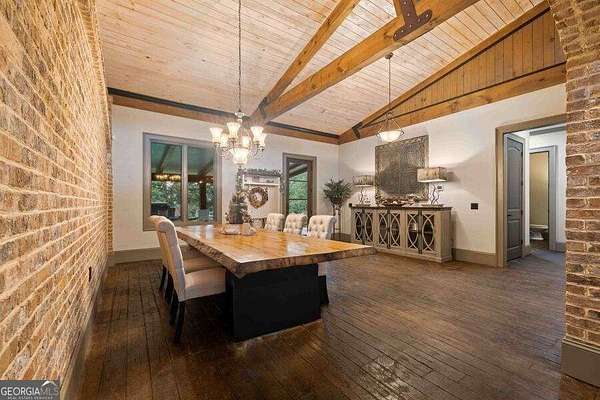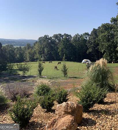 This custom-built home gracefully enhances the beauty of its setting, complimenting the landscape and spectacular views rather than competing with them. Experience the ultimate in indoor-outdoor living on acreage with boundless possibilities for hunting, farming, or just low maintenance serene relaxation! Must be seen in person to understand the flowing livability of this one-of-a-kind property. The Artisan crafted design combination of brick, wood, concrete and metal creates a timeless find of uncompromising quality. The very accessible house includes a main level primary suite. Bonus rooms can be converted to add additional bedrooms if needed. Your pets and/or animals will love the freedom of acres of wire backed 4-rail fencing or a fully fenced pasture with a pole barn. Whether looking to expand your real estate investment portfolio, a forever home or anything in between, this property checks all the boxes! A peaceful retreat that feels worlds away and offers seclusion without sacrifice as only minutes to every convenience of life in restaurants, shopping, medical facilities and highway access.