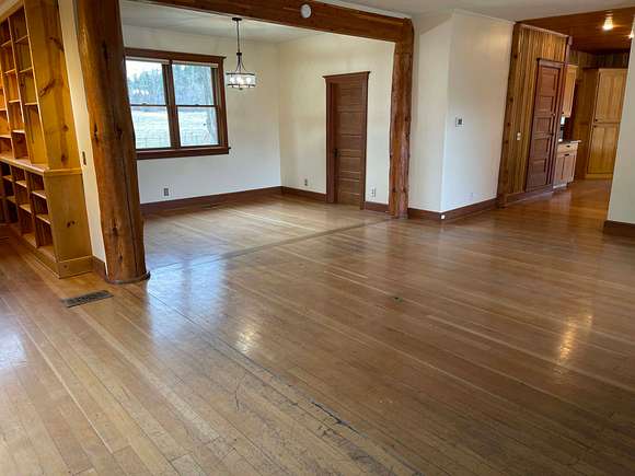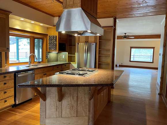 The large county home has over 2,000 square feet of wrap-around deck with panoramic views of the mountains and the pond in your backyard. Numerous outbuildings, including a guest cottage and a bunk house with sleeping quarters and a kitchen, add to the uniqueness and rustic country feel of the ranch.