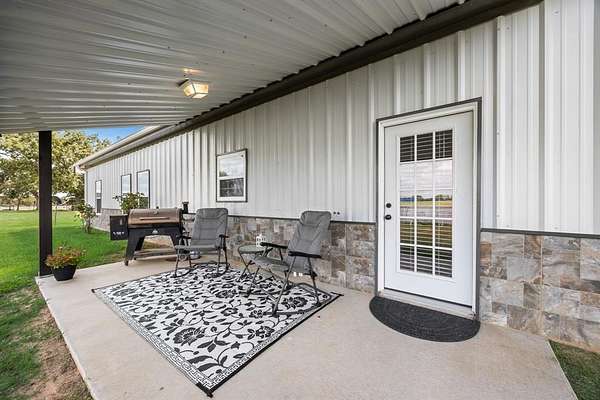 Welcome to this dream ranch retreat! This gated 10-acre horse property combines the comfort of modern living with top-notch equestrian amenities, just 5 miles from Lake Fork. This charming Barndo features 3 bedrooms, 2 baths and an open concept design. The Kitchen boasts granite countertops, SS appliances, and a large walk in pantry with ample space for a freezer. Relax in the cozy family room with a cozy FP or retreat to the primary suite with a Jacuzzi tub and oversized shower. This home was designed with efficiency and durability in mind. Spray foam insulation in walls an attic, metal roof, 900 sq ft insulated garage extended for a dually truck and low electric bills, covered front and back patios where you can soak up the sunsets. Horse lovers and ranchers will appreciate the well-planned facilities:2-stall barn expandable to 6 stalls, 60x60 barn with RV hookups and covered for RV or equipment, Concrete wash pad 12x12, fully fenced with no climb fencing and cross fencing, 60 ft round pen, Roping Arena with cattle shoot and multiple lean-tos and sheds. Whether you are seeking a working horse ranch, peaceful country retreat, or enjoy the Texas sunsets and park your RV, this estate checks every box