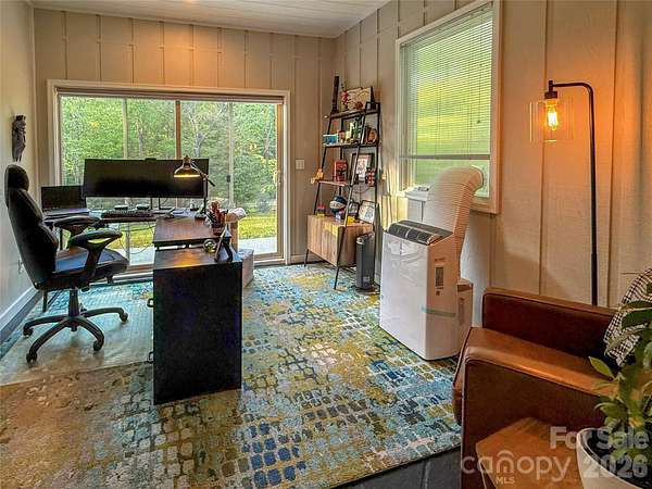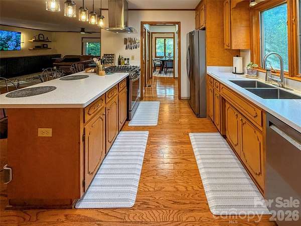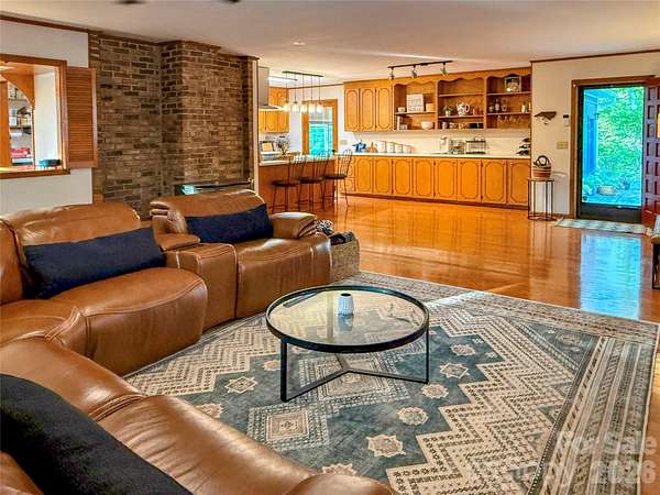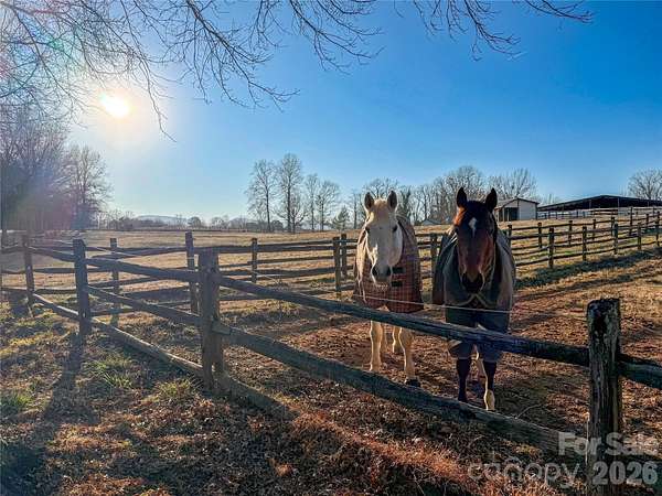 MOVE IN READY one-level ranch in one of Tryon Horse Country's most desirable and scenic locations. The 4.8 acre site is surrounded by expansive (ie 60+ acre farms) historic equestrian estates, conservation lands, green pastures and quiet country roads. This property offers privacy, views, and the perfect place for enjoying the equestrian lifestyle without maintaining a farm. Several nearby boarding barns are accessible by golf cart or horseback. The land and woods surrounding the house are protected from future development to maintain the natural setting of the area, to preserve the woods and trails. The open floor plan provides comfortable single-level living with wooded and winter mountain views from nearly every room. A large finished walk-out lower level includes guest space, full bath, and a large garage workshop with wide access from the back driveway. Thoughtfully, meticulously updated as the owners' intended forever home with new kitchen countertops (2025), HVAC (2021), well pump (2021), water heater and whole-house filtration system (2020). Reliable Spectrum high-speed internet. Rare combination of location, privacy, upgrades, and true one-level living in historic Tryon's hunting country.