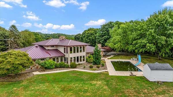 Built like a Fortress, Designed for Fun - The Ultimate Western PA Estate! Welcome to this exceptional 10 acre luxury estate offering 5,285 sq. ft. of timeless craftsmanship and modern amenities. Built with stone & frame construction, this 4-bedroom, 4.5-bath home showcases enduring quality w/ a 12" block foundation & steel hand-crimped roof. Entertain in style w/ inground pool, an enclosed patio, grilling area & pool house. The full 3,864 sq. ft. basement is partially finished into an entertainer's dream w/ a wet bar, gaming area, pool table, and spiral oak staircase. Car enthusiasts will love the 6+ car garage, featuring a 3-car attached top-tier garage plus an integral tandem 3-car garage accessed by a private blacktop drive. No zoning allows flexibility for a home-based business. With a half-mile paved driveway, concrete pad, and additional walking path, this property blends privacy, function, and elegance--making it the perfect retreat for luxury living or entrepreneurial vision.