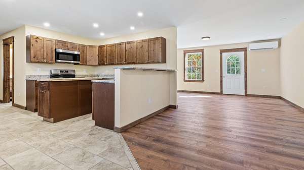 Welcome to your brand new construction home! This stunning property sits on a beautiful lot and features a welcoming portico that runs the full length of the house, adding charm and character while offering the perfect spot to relax and enjoy your surroundings. Inside, you'll love the open, airy floor plan designed for modern one floor living. The kitchen is a showstopper with granite countertops and bar, a butcher block island, and sleek stainless steel appliances that make gatherings with family and friends a delight. The space flows seamlessly into the spacious living and dining areas, creating a bright and welcoming atmosphere. Upstairs, you'll find a huge attic space complete with its own heat pump, offering the perfect opportunity to finish it off into multiple rooms - think a cozy home office, hobby or craft area, or a private guest suite. And just down the road, you'll find Swan Lake State Park the ideal place to swim, hike, or picnic while soaking in the natural beauty of Maine. Everything here is brand new, clean, and move-in ready all that's missing is you! Call for your own private showing!