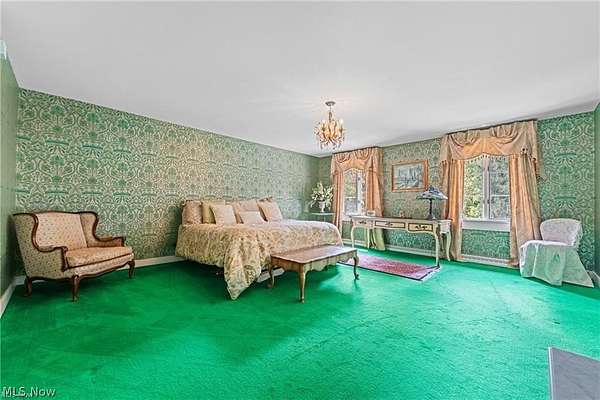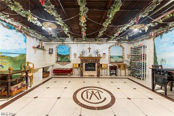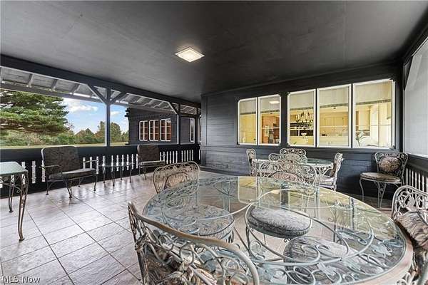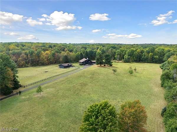 Step into a world of refined luxury and architectural distinction with this extraordinary Swiss Chalet estate, designed by renowned architect Thomas Schroth, who was once featured in Architectural Digest. Nestled on 111 acres, half wooded with valuable timber, this 7,000+ sq ft residence is a rare blend of artistry, craftsmanship, and natural serenity. From the grand foyer, the home reveals its soul. A custom maple library offers a quiet sanctuary, while the formal living room enchants with leaded-glass windows and a stately fireplace. The family room, accented with architectural wood beams and a second fireplace, invites warm gatherings, while the formal dining room with dual built-in china closets opens to a tiered stone terrace for elegant entertaining. The gourmet kitchen features an indoor grill, copper-inset herb garden, and breakfast nook that blends charm with functionality. Upstairs, stained-glass windows illuminate the staircase landings leading to three spacious bedrooms with en-suite baths. The master retreat includes a private balcony, spa-inspired bath, and dressing room, while third-floor bedrooms enjoy balconies with sweeping estate views. Amenities include a heated saltwater pool, 4 story elevator shaft (electric-ready), wine cellar/bomb shelter, whole house generator, dual furnaces and A/C units, automatic closet lighting, built-in drawers, breezeway for summer dining, and a seven-car garage. The pull-through horse barn offers a stall, heated sitting room with half bath, four fenced pastures, automatic waterers, and a tranquil creek winding through the grounds. Recent updates include a new hot water tank (2025), well bladder tank (2022), freshly painted exterior and windows (2024), commercial-grade driveway repaving (2025), terrace wall restoration, barn gravel refresh, and new gas line. This is more than a home-it is a legacy estate where architectural excellence meets the tranquility of nature.