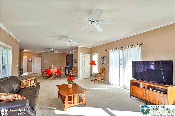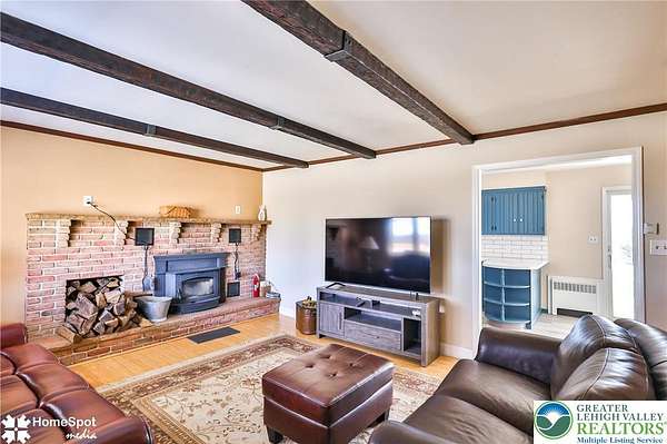 FORKS TWP, EASTON, PA--IN-LAW SUITE OR INCOME PRODUCING? This versatile ranch consists of 2,626 sq ft, 3 bedrooms, 2 full baths/2 powder rms, 1 kitchen w/ granite countertops, double ovens, & birch cabinets, a second newly-refurbished kitchen, 2 LR rooms, 2 fireplaces, pellet stove, C/A, mini split unit, 5 ceiling fans, 2 full basements, 2-car garage, & a pole barn--ALL ON 4.58 ACRES. From every window is a view of a stunning, quiet country setting w/ mature evergreens bordering the property on 3 sides, lush lawns, & colorful flowerbeds Originally a 2-BD single family home w/ 2-car garage, it was expanded in 2007 to include a second LR/DR, ultra-modern kitchen, Master Bedroom suite w/ walk-in closet & full bath/laundry. Individual entrances serve nicely for in-laws or renters without disturbing the main household. The pole barn, expanded in 2010, has endless uses as a garage/workshop/storage. Additional features include outdoor cameras, security system, newly installed Wi-Fi antenna, & office space in basement with walkout entrance.