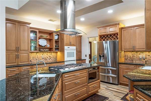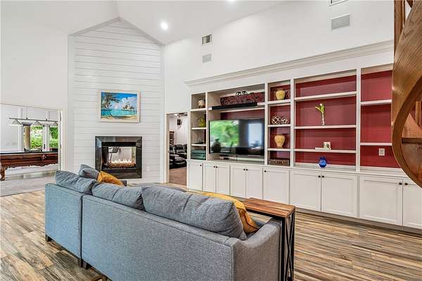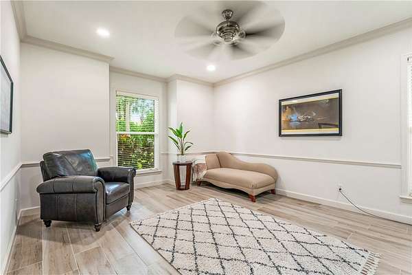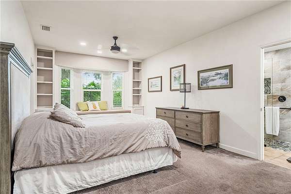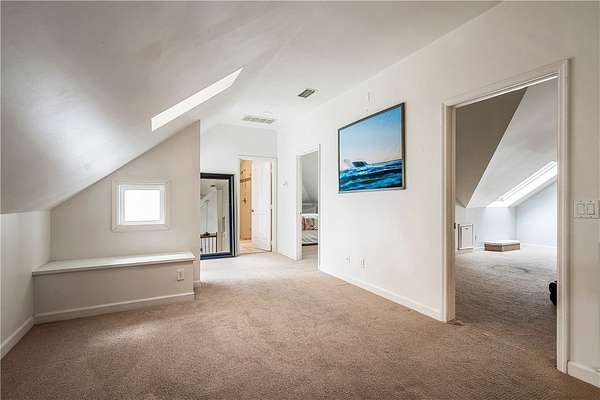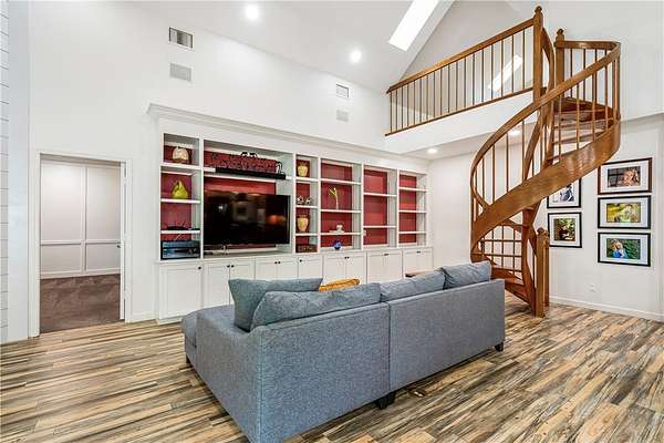 - Built In Features, Crown Molding, High Ceilings, Primary Downstairs, Skylights