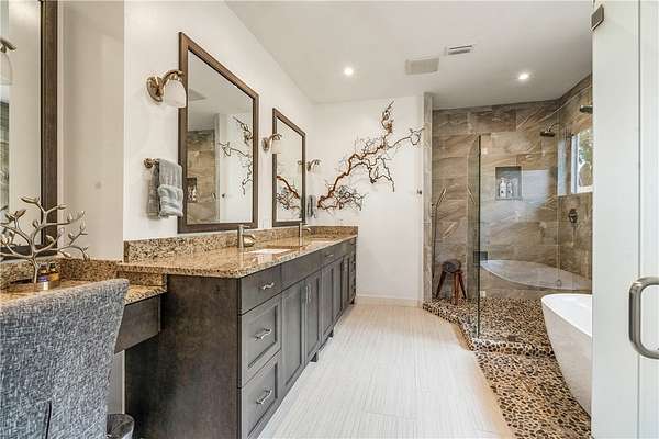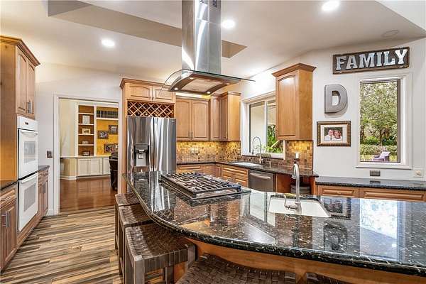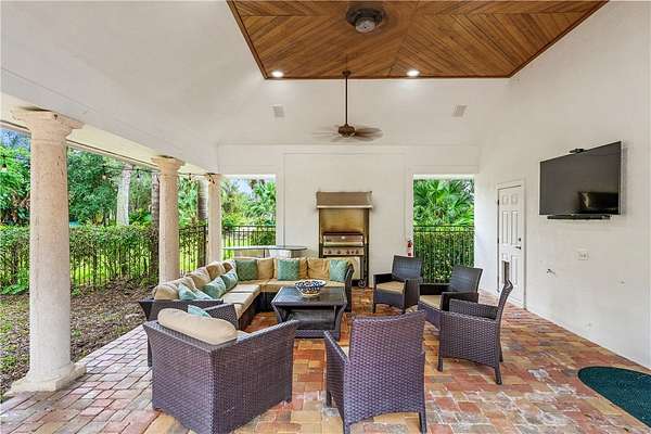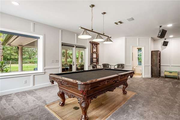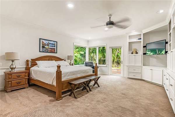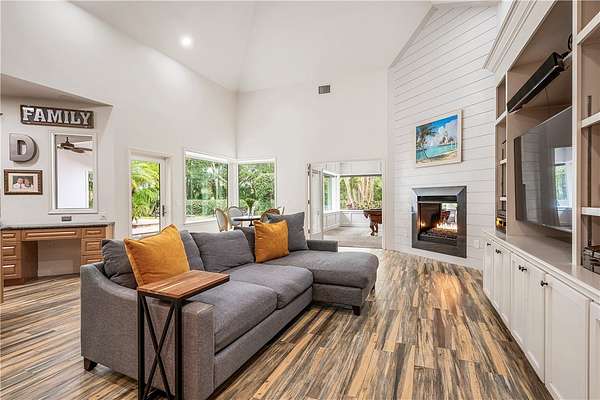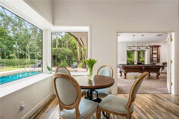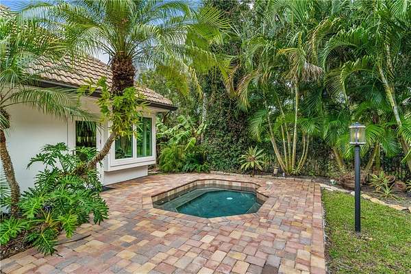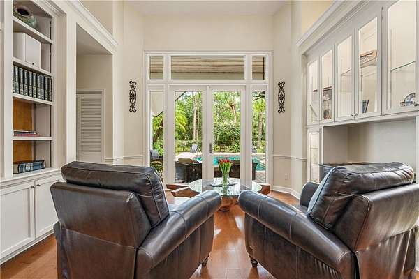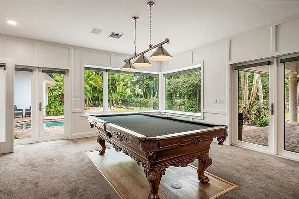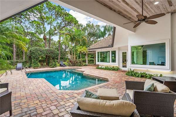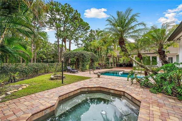 Your slice of paradise awaits on the 17th green in this magnificent estate nestled on 1.5+ AC. Every space reflects distinctive architectural details from volume ceilings & custom built-ins to a dramatic spiral staircase & see-through fireplace. Billiard rm offers a sophisticated setting while home theater w/wet bar & beer fridge is ideal for movie nights. Lush landscape creates a private bkyd resort feel w/2 covered patios, pool & spa. Blt to last w/majority impact glass, '17 tile roof, repiped plumbing, new 500-gal propane tank. Embrace the ultimate golf lifestyle & join Bent Pine Golf Club.