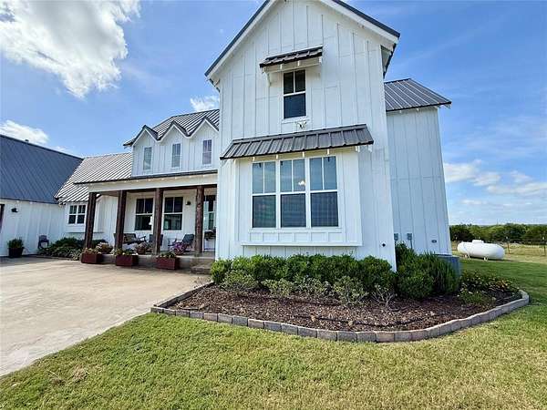 Welcome to 5500 County Road 234, a stunning ag-exempt 20-acre property just outside Hico, Texas, where modern comfort meets peaceful country living. From the moment you enter through the automatic gated entry, you'll notice the care and attention poured into every inch of this beautifully maintained estate. The custom home features luxury vinyl plank flooring, shiplap walls, clawfoot tubs, a spacious master suite with a walk-in closet, and a thoughtfully designed kitchen with a gas range, double ovens, and abundant storage. Extras like a dog wash station, three zoned HVAC systems, and spray foam insulation in the crawl space ensure comfort and efficiency year-round. Enjoy the views of the surrounding mountain landscape from the screened-in porch or one of the many covered patios. Outside, the land is set up for both function and beauty, three fenced pastures with water, a fruit orchard on irrigation, a large equipment and animal shed or shop, and a sprinkler system covering the manicured yard. The oversized three car garage offers ample space for vehicles, tools, and gear. This property is the complete package for anyone looking to enjoy the best of Texas Hill Country with privacy, practicality, and style.