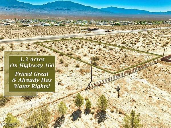 An Outstanding Opportunity Awaits With This 1.3 Acre Commercial Parcel With Water Rights Alrighty Dedicated & Power Is At The Property Line~~~Located On Pahrump's Primary Road, Highway 160, In The Northern Portion Of Town~~~The Property Is Perfectly Situated In The Heart Of This Growing Northern Area Of Pahrump & Located 20 Minutes From The HWY 95 Turn Off & 3 Minutes From Bell Vista, The Main Road To Death Valley~~~There Is Fabulous Potential For This Corner Parcel That Is Zoned GENERAL COMMERCIAL~~~Some Of The Permissible Uses Include: Restaurants (Including Drive Throughs), Automobile Sales & Other Services, Mini-Storage Facilities, Veterinary & Animal Services & Various Retail Establishments, Request A Copy Of The Nye County Code For More Information~~~The Seller Will Consider Owner Financing (If Needed) With 25k Down~~Take A Step Towards Your Future Pahrump Business Plans & Secure This Amazing Commercial Parcel With Water Rights Already Dedicated, Don't Let It Get Away!