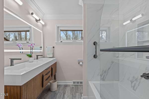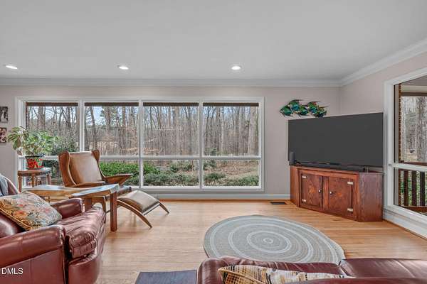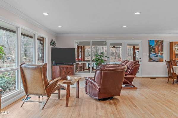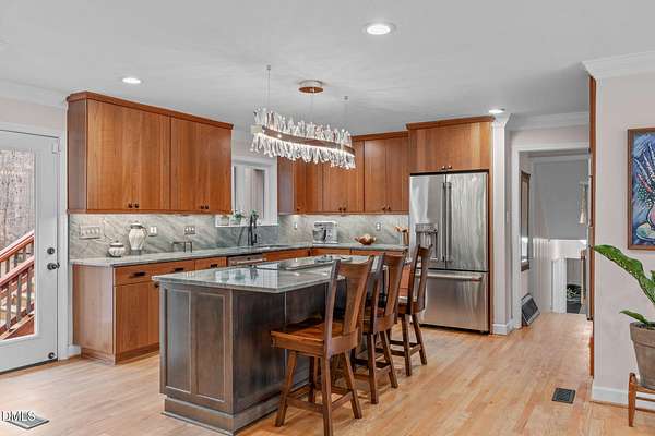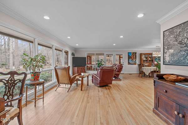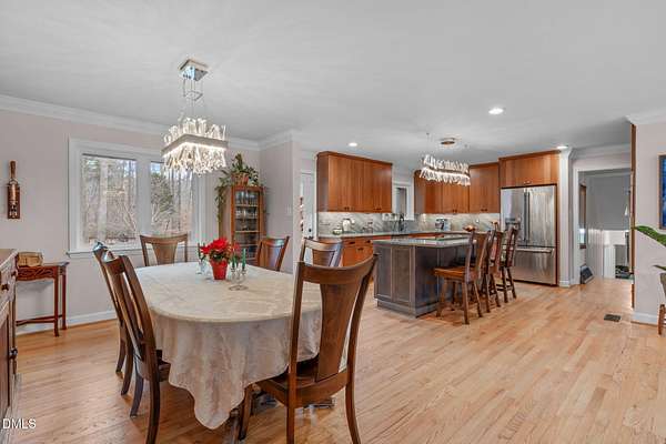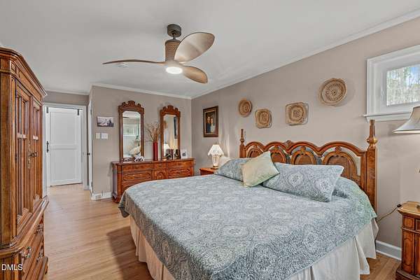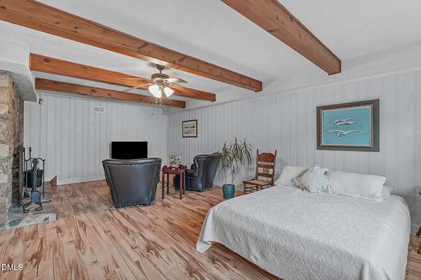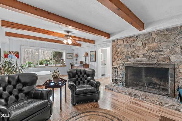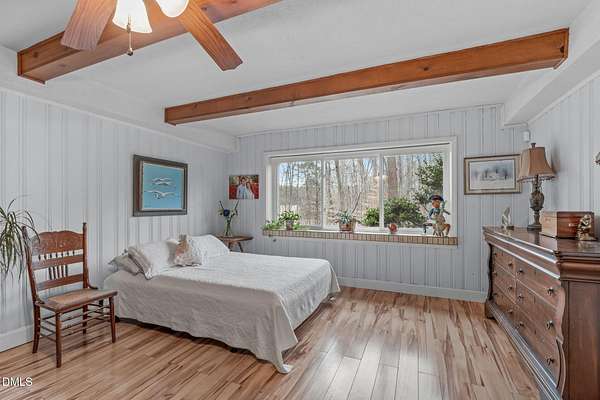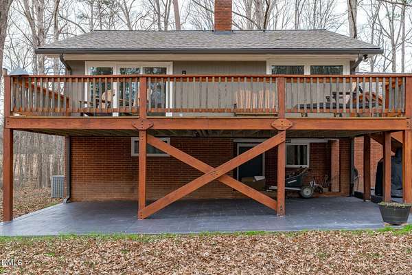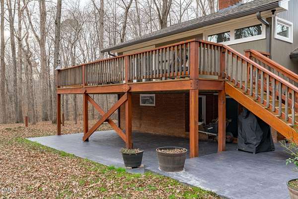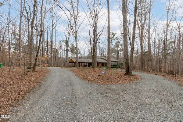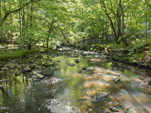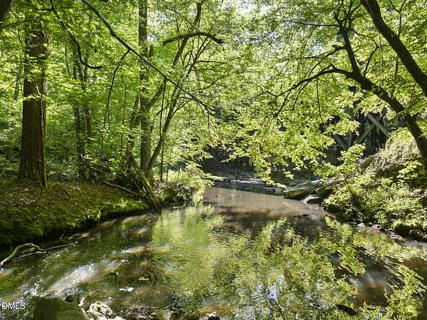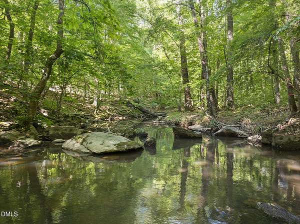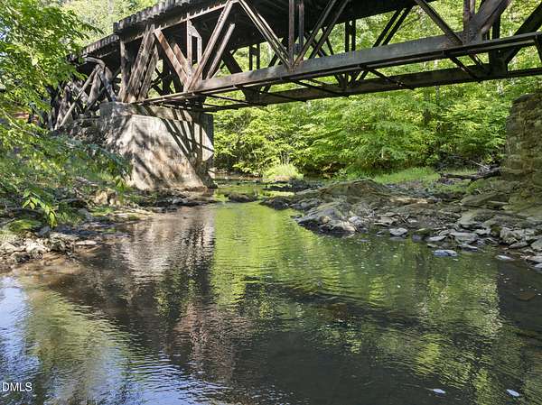 The train trestle view over New Hope Creek sets the scene for this amazing property! The existing home on this 6.6 acre lot has been beautifully renovated and has water on 3 sides. The expansive deck off of the primary bedroom was made from redwood harvested from the land. Conveniently located between I40 and I85 you can get to UNC or Duke very quickly! The adjacent lot has a 5 bedroom septic permit should you choose to build your dream home on this rare piece of land. From the albino deer to the cute fox family, you're never short of friends here. The low maintenance wooded trail that meanders by the creek is loaded with mature hardwoods. It's all conceptual until you see it for yourself. Come and see this amazing opportunity!