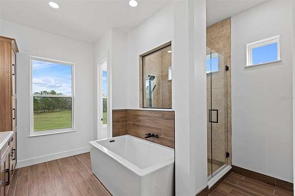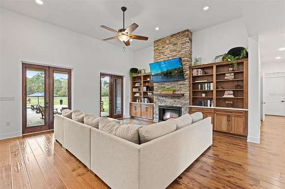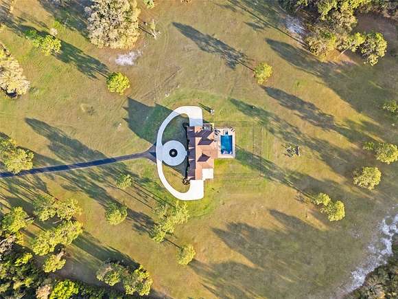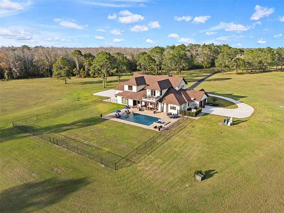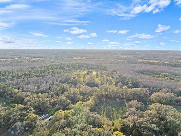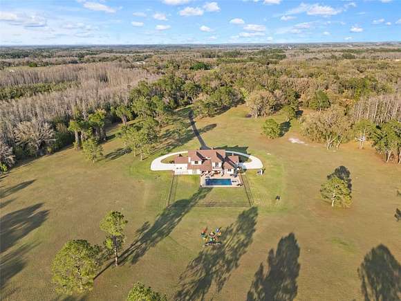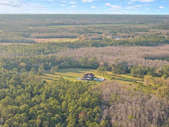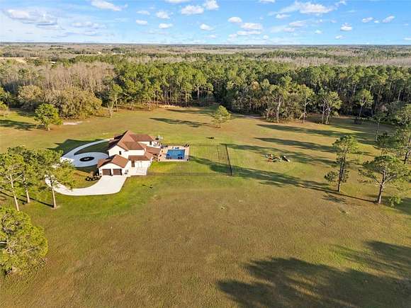 81 acres of glorious seclusion and at the heart your private custom built estate home, elegantly designed and crafted with a versatile floor plan for multi-generational living that includes formal, family, flex and outdoor spaces, your choice of a main floor or second floor primary suite and there is even a hidden pantry for a touch of whimsy! Outside features of the property include: An over 1,000 SqFt zero entry resort style pool with a hot tub and wet pad, 18,000 SqFt asphalt driveway, hurricane windows, dual/split 2-car garages with attic access, whole home Generac system, 1,000 gallon owned and buried propane tank, buried utilities, concrete landscaping borders and a 12-zone watering system for the landscaping. The interior of the home is a light and bright masterpiece of design and functionality delivering; 10' ceilings throughout / 13' living room ceiling, 9' doors, oversized windows with a view in every room, whole home water filtration system, hidden Cat 5 & HDMA cables, custom 3-zone A/C, hickory cabinets throughout, tumbled stone backsplash, soft close cabinetry and drawers, a Maytag commercial washer and dryer with WiFi technology, your choice of owners suites - one on the first floor and one on the second with a wine/coffee bar and fridge to enjoy a beverage on your private composite board balcony, custom shoe closets in both owner's suites, hidden walk-in kitchen pantry with fridge and custom shelving, engineered hardwood flooring and upgraded spray foam insulation. To say no detail has been missed would be an understatement! With 30+ acres cleared/maintained while the rest remain wild and wooded, this property feels like a personal paradise of native trees and plants right in the middle of Central Florida. You would never know that just minutes away conveniences await - shopping, dining, state parks, lakes and area theme parks and so much more. This level of luxury paired with endless acreage doesn't come around often - call today to schedule a private tour and be prepared to fall in love with Oak Manor!