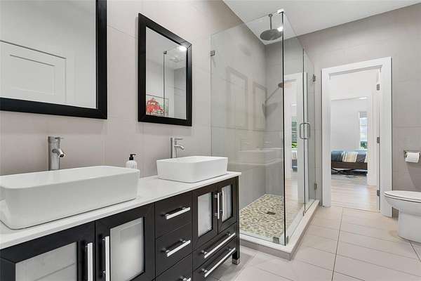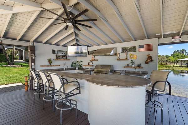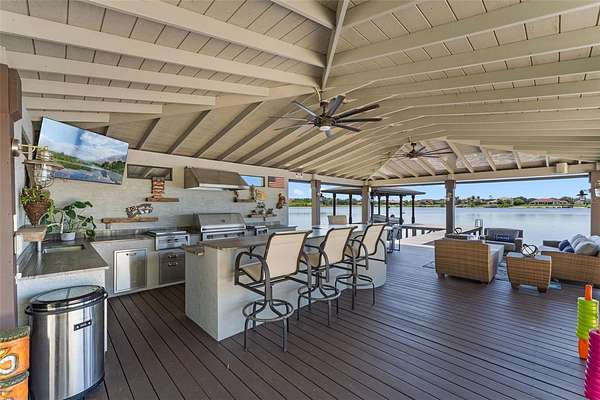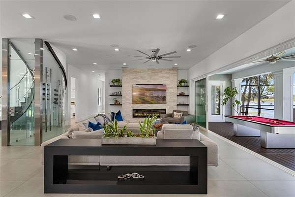 Nestled on a 5-acre lot with 320 feet of lakefront and a private beach on the skiable Lake Davis. This Contemporary 8-bedroom, 6 full bath home wrapped with open porches spans nearly 7000 sq ft. Grand foyer with spiral staircase which features a magnificent glass wine cellar below. Modern, open concept with water views from nearly every room. Master bedroom is located on 1st level along with a separate office. 2nd level features 4 bedrooms and a living room. Separate apartment above the 3-car garage attached by a breezeway. On opposite side of the house, attached by a breezeway, is a 2-bedroom, 1 full bath, living room, and full kitchen guest house with a large porch overlooking the water. Enjoy pool side entertaining complete with an outdoor kitchen and expansive back deck or bring your entertaining to the lake that features more than 1200 sq ft of outdoor living including a full outdoor kitchen/dining/living room area, boat lift and a private beach.