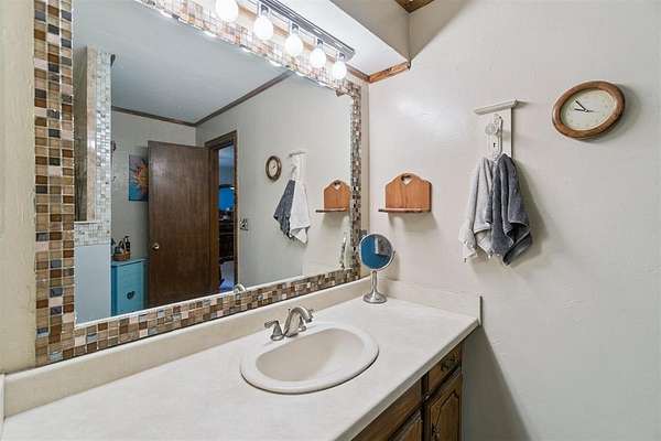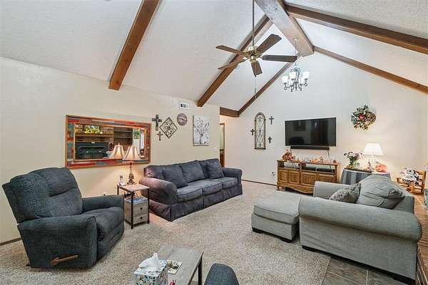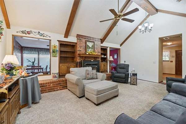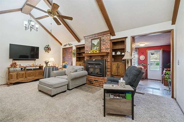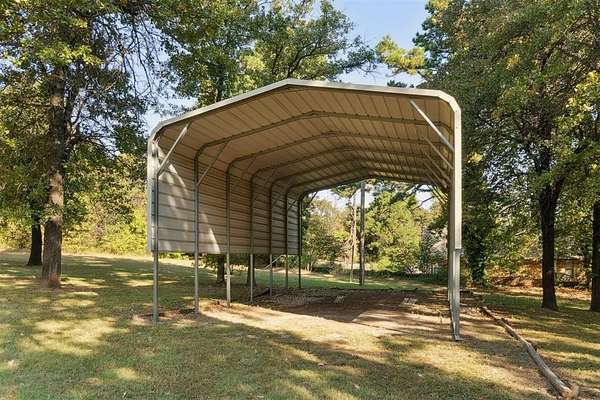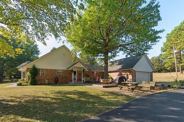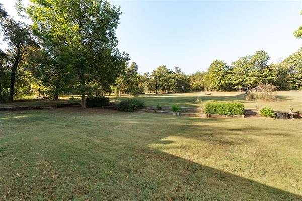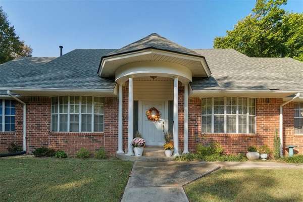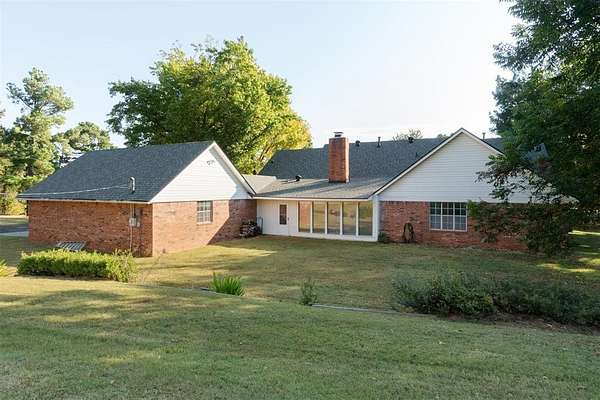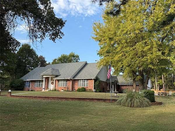 *SIGNIFICANT PRICE IMPROVEMENT - DON'T MISS THIS OPPORTUNITY!* Set on five serene acres with mature trees-including two plus acres of natural woodland-this property blends privacy, space, and everyday convenience within the Carl Albert School District. The home features two living areas, a large dining room, an enclosed patio room, and a cozy fireplace. The kitchen offers a breakfast bar and a full walk-in pantry. The primary bedroom is extra spacious and large enough for a sitting area as well. The walk in closet has built ins for additional organization. The primary bathroom was recently upgraded with a walk in shower and built in seat. The home includes two full and one half baths in total and four very comfortable sized bedrooms. Storage capacity is built into every thinkable location. Outdoor living shines here and includes multiple patio areas, a firepit area, a flagpole, and a picturesque driveway to welcome gatherings large and small. Practical extras add major value-an oversized garage, a carport sized for RV parking, two workshop/sheds, and an outdoor storm shelter. Major system updates include a one-year-old roof, two HVAC units (one recently replaced), two hot water heaters, energy efficient windows replaced approximately six years ago, and a recent septic line update. A dedicated storage room keeps everything organized. This property will captivate your heart from the moment you turn into the driveway.