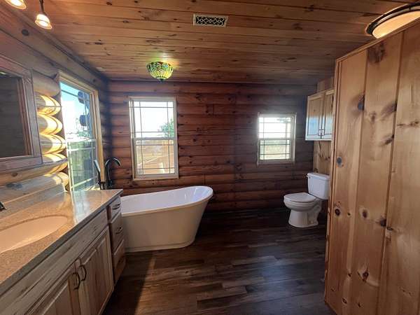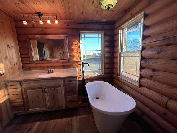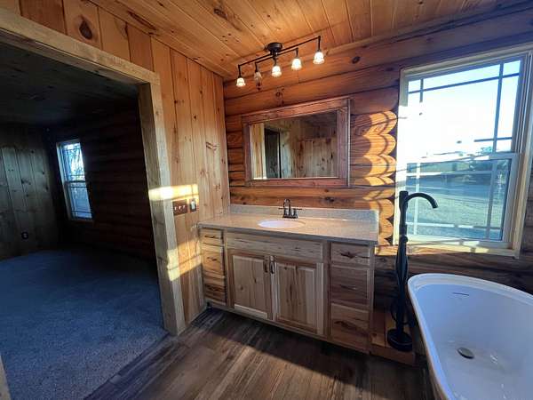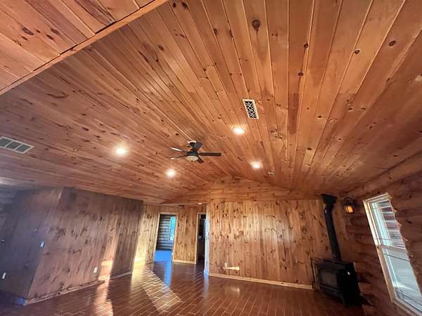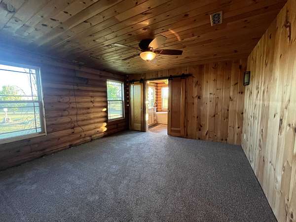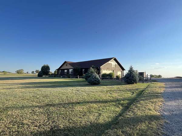 Rustic Log Cabin Home on 4.06 Scenic Acres - Just North of Salina Nestled in the sought-after Big Valley Addition just a few miles north of Salina, this authentic log cabin is more than just a home--it's a lifestyle. Set on 4.06 acres of secluded, picturesque land, this one-of-a-kind property offers the perfect blend of rustic charm and modern comfort. Step inside to discover a warm and inviting 4-bedroom, 2-bathroom home designed with true log cabin craftsmanship. The bedrooms all have brand new carpet and the master ensuite has new luxury vinyl planking plus a new soaker tub. The open-concept layout features a soaring vaulted ceiling, enhancing the spacious feel of the living room wired for surround sound, kitchen, and dining areas. Rich wood textures and rustic finishes throughout create a cozy atmosphere, while patio doors invite you to extend your living space outdoors. The expansive patio--partially covered and ideal for year-round use--provides breathtaking views of Kansas sunsets and the surrounding wilderness. Whether you're sipping coffee on the front porch at sunrise or relaxing on the covered patio at dusk, you'll enjoy the peace & privacy this property offers. Outdoors, nature lovers and hunters alike will be drawn to the property's diverse terrain, mature trees, and thriving wildlife habitat. Deer, wild turkeys, coyotes, and more frequent the area, making it a true haven for outdoor enthusiasts. Additional features include: Oversized attached 3-car garage/shop with 861 sq. ft., a pellet stove installed by Tony at Milestone Chimney--perfect for a man cave with a recreation room or for storing ATVs, hunting gear, or outdoor equipment. Unfinished 350 sq. ft. loft space above the garage, ideal for a future guest suite, theater room, or hobby area. All appliances remain, seller does not warrant. New roof 2022, all electric home, with Rural Water District #2, Private Trash, No Special Taxes, HOA - $300 per year Expanded driveway and parking area with room for an RV or future outbuilding There is a storm shelter rated for an EF 5 tornado. Driveway pickup for school at Bennington/Twin Valley USD #240 Underground electrical transformer already in place north of the driveway, offering excellent potential for a new outbuilding or in-law quarters. **Property lines extend to the evergreen tree line to the north, the street sign to the south, and to the southwest. From tranquil mornings to unforgettable sunsets, this log cabin offers the best of country living with space, privacy, and endless possibilities. It's like living in Colorado--without leaving Kansas. Schedule your private showing today to experience this incredible property in person. It's a must-see $300/yr HOA dues cover road maintenance