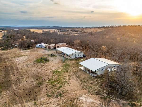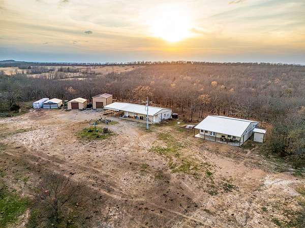 Welcome to Shady Grove Ranch, an premier 880+/- acre recreational and hunting ranch located in Atoka County, Oklahoma! This large, diverse property offers the rare combination of excellent wildlife habitat, established hunting infrastructure, multiple water sources, and comfortable lodging, making it a true turn-key ranch in the heart of Southeastern Oklahoma. The ranch is made up of rolling timbered ridges, creek bottoms, open native grass areas, and multiple ponds, creating outstanding habitat for wildlife. The area is well known for phenomenal whitetail deer hunting, and the property has a strong history of producing great deer. The ranch is already set up with numerous blinds and feeders throughout, allowing the next owner to step in and enjoy hunting immediately. In addition to deer, the ranch supports a healthy population of Eastern wild turkeys, providing even more hunting opportunities. The ranch is primarily covered in mature timber, offering excellent bedding cover and travel corridors for deer. Scattered throughout the ranch are open pockets of native grasses and clearings that are ideal food plot locations, allowing the property to be further enhanced for wildlife management. A creek system runs through the ranch that holds water, and there are multiple ponds across the property, providing dependable water sources that help attract and hold wildlife year-round. A well-developed trail system runs throughout the ranch, making it easy to access different areas of the property by side-by-side or ATV. The diverse terrain and topography create natural funnels and hunting setups while also providing beautiful views and varied landscapes. In addition to the excellent habitat and hunting setup, the ranch includes great improvements that make it a true hunting retreat. The main lodge (40x40) features a beautiful kitchen with a large island, spacious living room, two bedrooms, and a luxurious bathroom, along with covered front and back porches that create the perfect place to relax after a day outdoors. A second living quarters building (40x60) provides additional space for guests with a kitchen, large open gathering area, three bedrooms, and a bathroom, along with a large covered outdoor hangout area and front porch. The property also includes a shop with a loft apartment featuring a kitchen, bedroom, and bathroom, along with two additional shops that provide plenty of storage for equipment and ranch tools. The ranch also offers several additional recreational features including a great camping area located near one of the ponds, a shooting range for practicing and sighting in rifles, and a storage container for equipment and supplies. There are a couple elevated lookout areas providing breathtaking views of the ranch! Ranches of this size with substantial improvements don't come to the market very often! Come check this one out while you have the chance! The property is located 30+/- minutes from Atoka, 2 hours and 5+/- from Tulsa, and 2 hours and 25+/- minutes from Dallas. All showings are by appointment only. If you would like more information or would like to schedule a private viewing please contact Owen Bellis at (918) 367-7050 . Disclaimer: The boundary lines shown are approximate and are provided for general reference only. Arrowhead Land Company makes no representations or warranties, express or implied, as to the accuracy, completeness, or reliability of those property lines. Buyers are advised to obtain an independent survey to verify exact property boundaries.