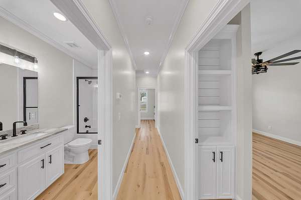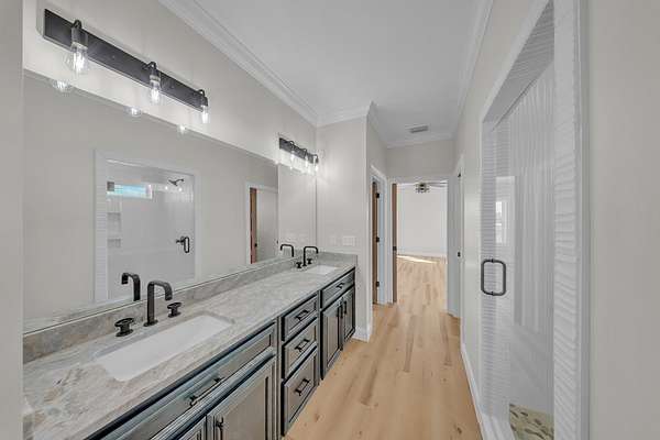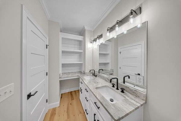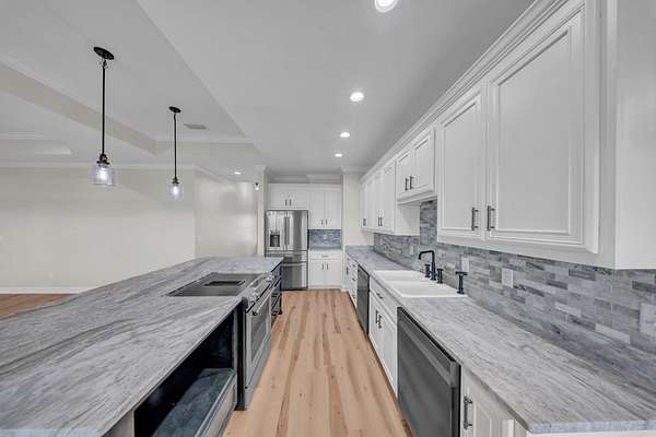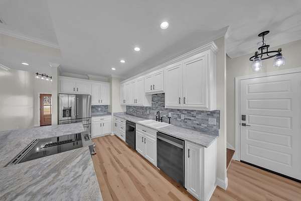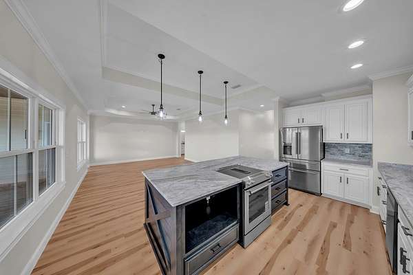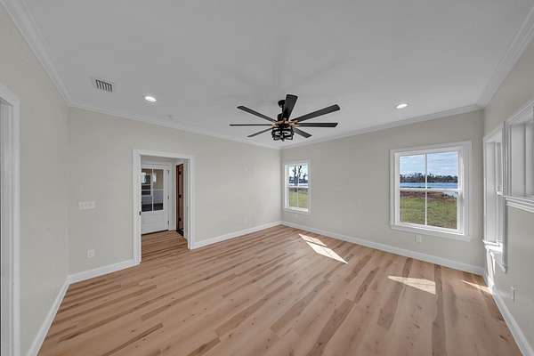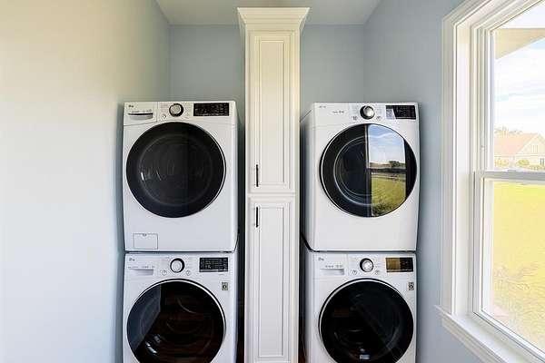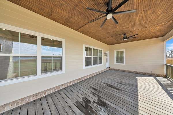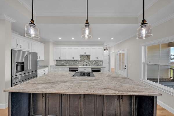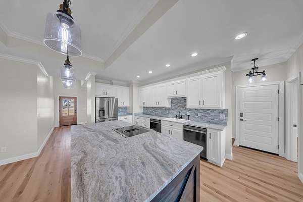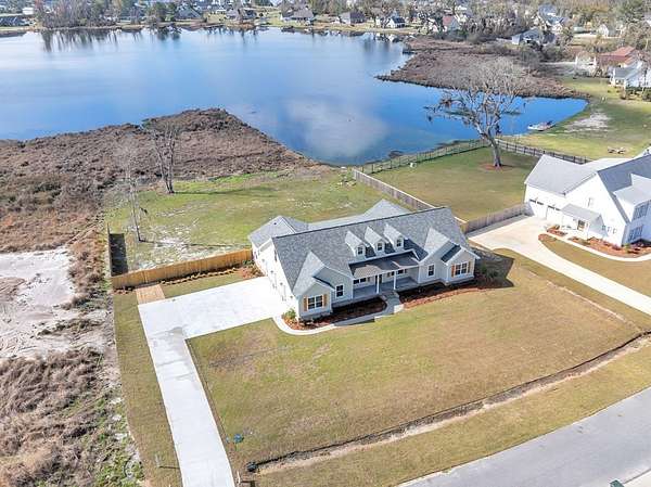 Welcome to your Dream Home in the highly sought-after School House Pond subdivision! This stunning custom-built lakefront home offers 5 bedrooms, 4 full bathrooms, and 3,431 square feet of beautifully designed living space with peaceful water views that create the perfect backdrop for everyday living. Inside, you'll find a thoughtfully designed open floor plan that seamlessly connects the living room, kitchen, and dining areas—perfect for entertaining while enjoying breathtaking views of the lake. Natural light fills the home, highlighting the quality craftsmanship and spacious layout. The Primary Suite has it all, including its own Laundry room, 2 walk-in closets, dual vanities, and separate custom tile shower and soaking tub. The upstairs fifth bedroom suite doubles as an incredible bonus retreat, complete with a full bath, wet bar and room for your popcorn microwave, cozy reading nook, and a separate lounge or game area. This versatile space is ideal for guests, a media room, teen suite, or private getaway. A standout feature of this home is the oversized guest laundry room, thoughtfully equipped with hookups for two sets of washers and dryers, offering unmatched convenience for busy households. The three-car garage provides ample room for vehicles, storage, recreational equipment, or even a workshop area. With its luxury finishes, flexible living spaces, and serene lakefront setting, this home offers the perfect combination of comfort and elegance in one of the area's most desirable communities. Don't miss out on this one!!!