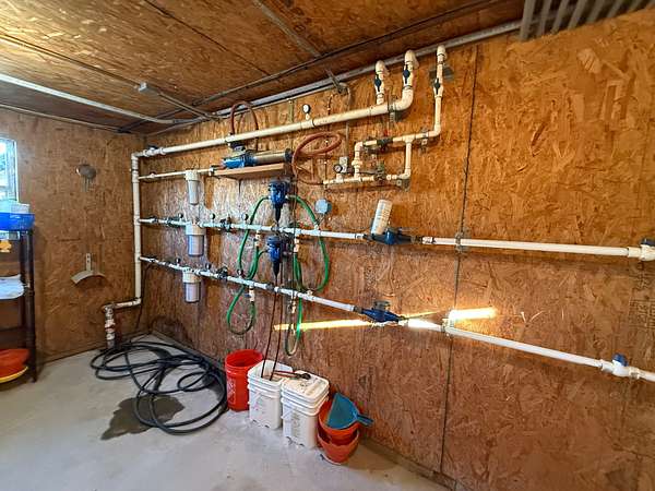 - Houses are serviced by propane heat, with water sourced from on-site wells, city water backup, and a 14,000-gallon above-ground water storage tank--providing an excellent water infrastructure setup.