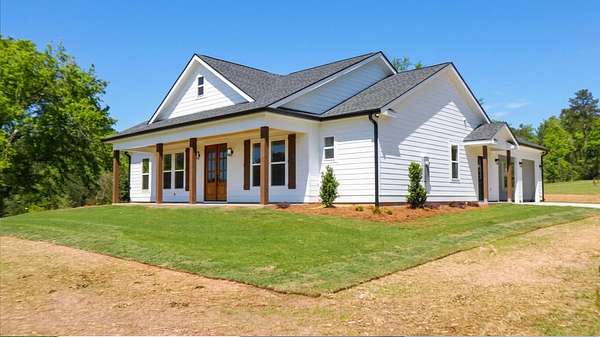 Welcome to your brand-new dream home in Columbia County only a few driving minutes away from the Greenbrier Schools and approximately 10 minutes away from Clarks Hill - Strom Thurmond Lake!!! This beautifully crafted 3-bedroom, 2.5-bath new construction sits on a spacious 2.8-acre flat lot, offering the perfect blend of privacy and modern comfort. Step inside to an open floor plan featuring vaulted ceilings and a split-bedroom layout, ideal for both everyday living and entertaining. The home is finished with luxury vinyl plank flooring and tile throughout, combining durability with stylish appeal. The heart of the home is the eat-in kitchen, complete with granite countertops, stainless steel appliances, and a charming farmhouse sink. Enjoy peaceful views of the pond out your front windows or just relaxing on your covered front porch. The large laundry room adds convenience, while the two-car garage provides ample storage and parking. Outside, the home is sodded/seeded and equipped with an irrigation system, making lawn maintenance a breeze. Topped with architectural shingles, this home offers both quality construction and curb appeal. Don't miss the opportunity to own this stunning home with acreage, and modern finishes.