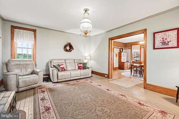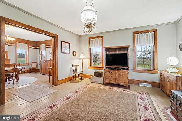 Welcome to 5505 Olde Scotland Road - a property that truly captures the feel of classic farmhouse living, surrounded by open skies, rolling farmland, and the kind of setting that's getting harder to find. Set well off the road on 5.6 scenic acres, this beautiful brick farmhouse offers a sense of arrival the moment you come up the driveway. Mature trees, wide-open views, and the peaceful backdrop of neighboring farmland create a setting that feels both private and timeless. Inside, the home blends character with everyday livability. The main level features a spacious eat-in kitchen at the heart of the home, along with a formal dining room and a large living room that offers plenty of space to gather. A full bathroom and convenient first-floor laundry add to the functionality of the layout. Upstairs, you'll find three well-sized bedrooms, including a comfortable primary suite, along with additional flexible living space that could serve a variety of needs. Step out onto the private balcony and take in the surrounding views - a quiet spot to start or end your day. One of the standout features of the home is the expansive space above the attached 3-car garage. Whether you're looking for a game room, home office, gym, or guest space, this area offers the flexibility to make it your own. The home also includes a large attic that provides even more opportunity for future finished space - ideal for a craft room, playroom, or additional living area if desired. Outside is where this property truly comes to life. A large barn and open pasture/meadow make it well-suited for animals, hobby farming, or simply enjoying the land. There's room to spread out, room to grow, and room to create the lifestyle you've been looking for. If you've been searching for a property that offers space, setting, and potential - all in a peaceful, country location - 5505 Olde Scotland Road is one you won't want to miss.