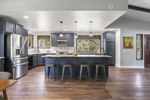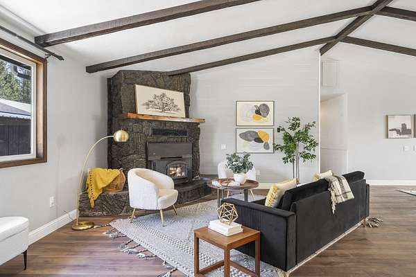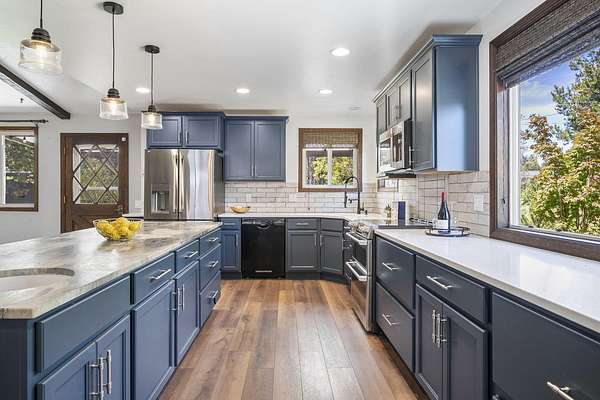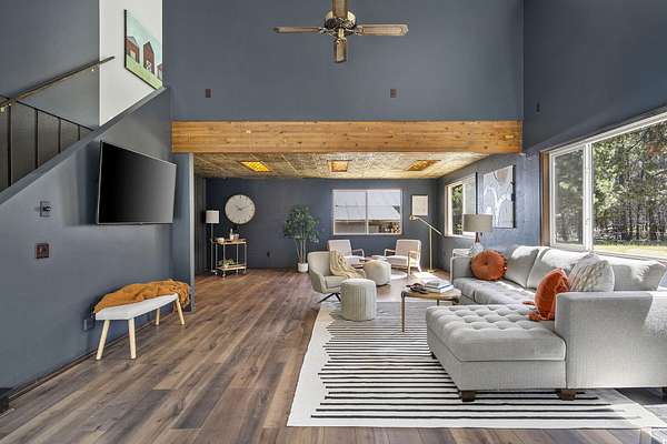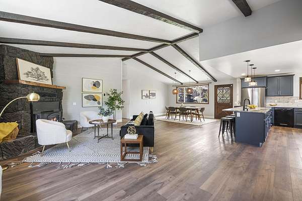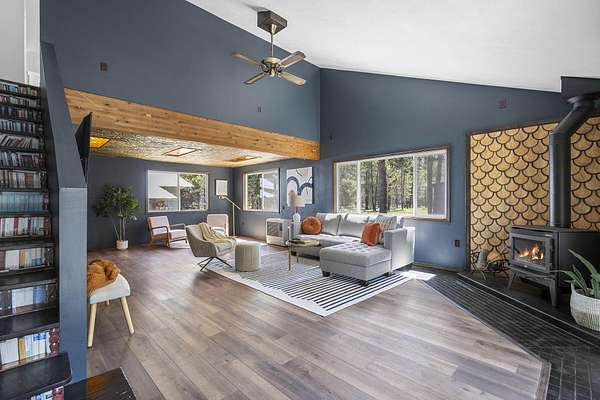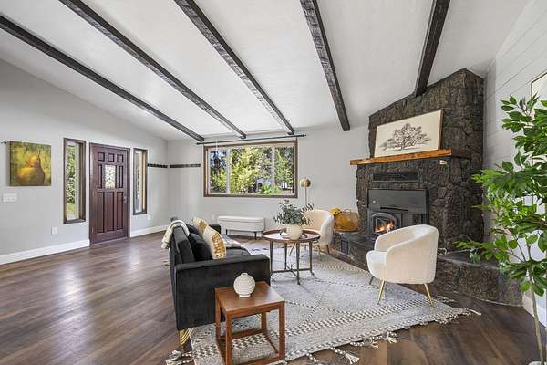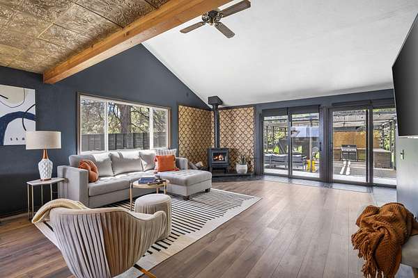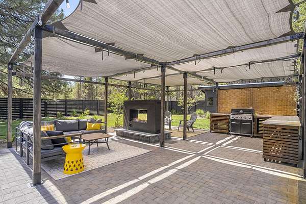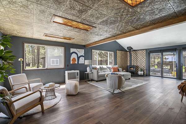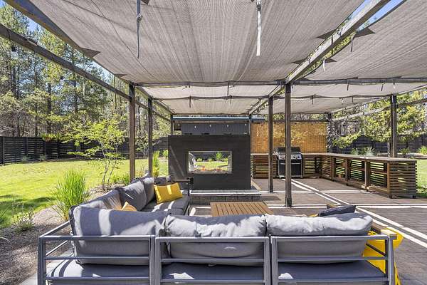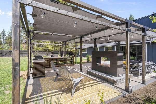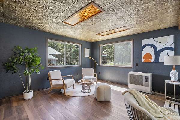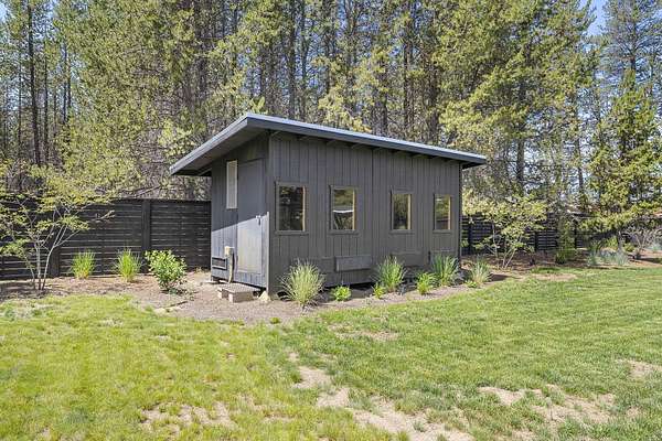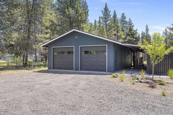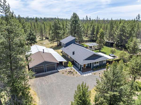 Welcome to your own Central Oregon retreat where whimsical character meets modern luxury. This home's quirky yet sophisticated style features open-concept living with a gourmet kitchen with huge island, marble counters, vaulted ceilings and two wood burning fireplaces. The main part of the home has 3 bedrooms, including a beautiful and bright primary suite. You'll love the vintage lounge-style living space in back with huge loft bedroom and 3-acres of forest views. The backyard offers the best of both worlds - a manicured green oasis with fully fenced area, grass, and outdoor fireplace & bar perfect for entertaining, plus acres of forest - ideal for exploring or hanging a hammock in nature's embrace. The home also backs to national forest for ultimate privacy. A huge garage, carport, green house, multiple buildings and RV parking, plus too many updates to list! Close to restaurants and shopping but far enough away to escape the busyness of Bend and Sunriver.