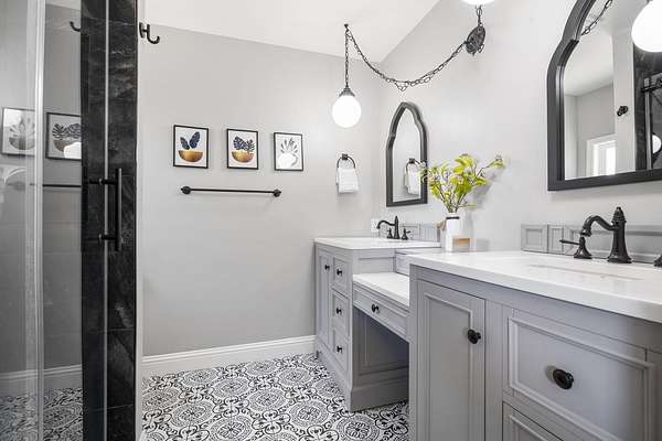 - Double Vanity, Granite Counters, In-Law Floorplan, Kitchen Island, Open Floorplan, Primary Downstairs, Stone Counters, Vaulted Ceiling(s)