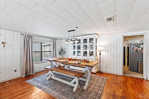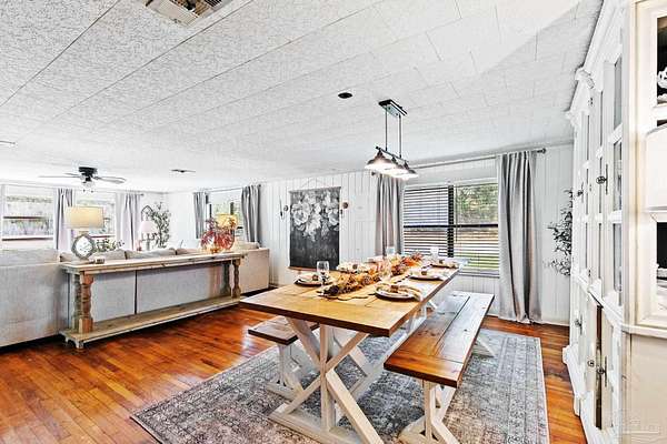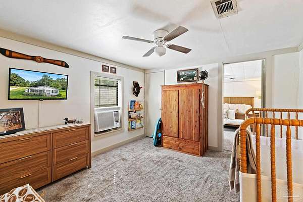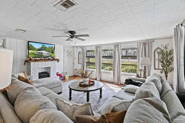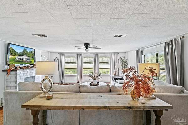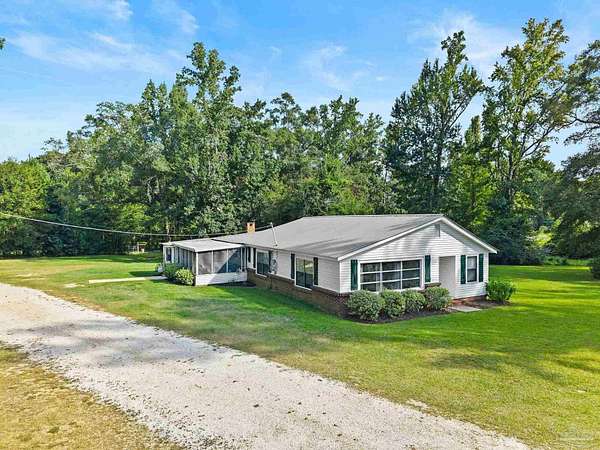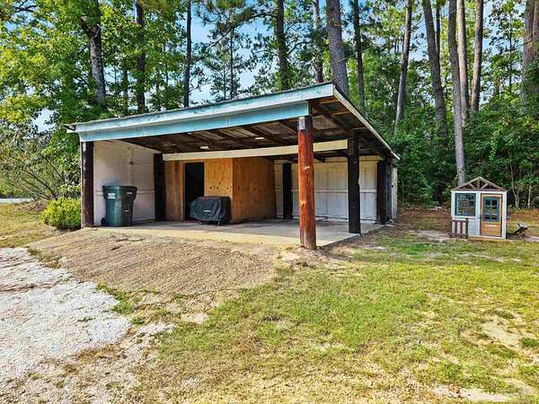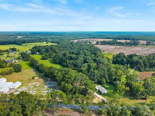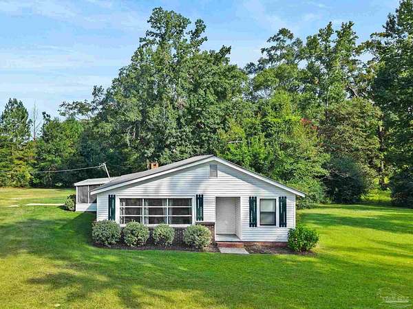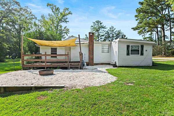 Discover the best of Baldwin County's rural living on this 5.6+/- acre property-where the true value is in the land. The classic 1945, 3-bedroom, 1-bath home offers 1,648 sq. ft. of charm and comfort, but it's the acreage surrounding it that truly steals the show. Inside, you'll find hardwood floors, generous natural light from oversized windows, and a cozy fireplace anchoring the main living and dining areas. The kitchen features butcher block countertops, a breakfast island, and a wall-mounted TV, flowing easily into the den for relaxed everyday living. The flexible layout includes a primary bedroom with an adjoining bonus space ideal for a nursery, office, or private retreat. A full-size laundry room and screened porch round out the convenience. Step outside and the lifestyle you've been looking for unfolds. A wood deck and gravel patio make simple work of outdoor gatherings, while two detached carports/sheds offer added storage. But the land is the real treasure here: a mix of cleared acreage perfect for farming, gardening, or future building, balanced with quiet wooded areas that allow for privacy, exploration, and peaceful seclusion. The location is hard to beat-rural and private, yet close to everything. Just 10 minutes from town, minutes to the Tensaw River, 6 minutes to Novelis, and only 15 minutes to Walmart and downtown. With multiple parcels and plenty of room to grow, this property offers endless potential. Enjoy the existing home, build your dream place in the future, or simply enjoy the beauty of wide-open Baldwin County acreage. The majority of the value is in the land!