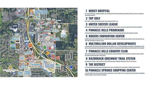 uite 200: 8,358 SF. Asking rent: $26.00 PSF. Rent type: Modified gross. Site highlights +/-8,358 SF office space available for lease January 1. The suite includes one breakroom, two large conference rooms, multiple private offices, and dedicated storage space. Recent renovations to the building include modernized lobbies, restrooms, and hallways, creating a clean and updated work environment. Located just off Pinnacle Hills Parkway with easy access to I-49, the property is within walking distance to Topgolf, the Walmart AMP, restaurants, shopping, and new developments.