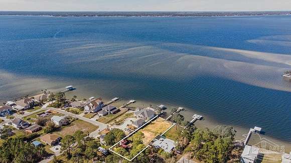 Gorgeous waterfront Lot off Innerarity Point Rd. This over half an acre lot boasts 90 feet of waterfront footage. You can build your dream home or build 2 homes! The lot is zoned for medium residential use allowing more than one structure to be built. No HOA is a plus! The 120 feet of thru flow dock has electrical, water service with a shut off valve and 2 hose bibs. There is a boat lift that is sold "as is". It currently does not work. There are 2 storage buildings that sit on the property. They both have electrical ran to them as well as roughed in wiring for one shed for power to the water heater, mini split, and installed convenience outlets & lights inside & outside. Owner has updated the tiny shed/home with a toilet, shower and sink.