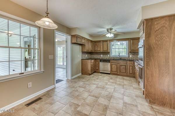 Welcome to this spacious and versatile home offering the convenience of two main-level living options, perfect for multi-generational living or added flexibility. The main level features a primary suite complete with a private bathroom, along with two additional bedrooms and a full bath. You'll also find a sunroom with laundry, creating a bright and functional space for everyday living. The heart of the home includes a large kitchen with a dedicated workspace area, equipped with a dishwasher, stovetop, and double oven--ideal for cooking and entertaining. Multiple living spaces including a living room, den, and formal dining room provide plenty of room to gather, relax, and host. A carport adds to the home's convenience. Downstairs offers even more possibilities with a separate living area that includes its own outside entrance. This space features a living room, den, bedroom, full bathroom, and its own laundry area, making it ideal for guests, extended family, or potential rental opportunities. Additionally, there are two single-car garages and abundant storage space. Situated on approximately 3.44 acres, the property provides a peaceful setting with natural beauty. Enjoy the sights and sounds of a very actively flowing creek, along with a charming old spring house accompanied by a stream--adding unique character and a touch of history to the property. This property offers a rare combination of space, functionality, and scenic surroundings--don't miss the opportunity to make it your own. All information is deemed reliable but not guaranteed. Buyer and buyer's agent to verify all information.