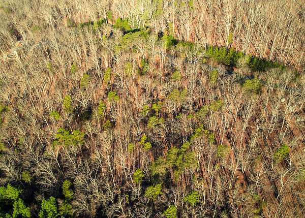 The surrounding area includes a mix of residential homes, wooded tracts, and open space, creating a setting that balances privacy with nearby neighbors.